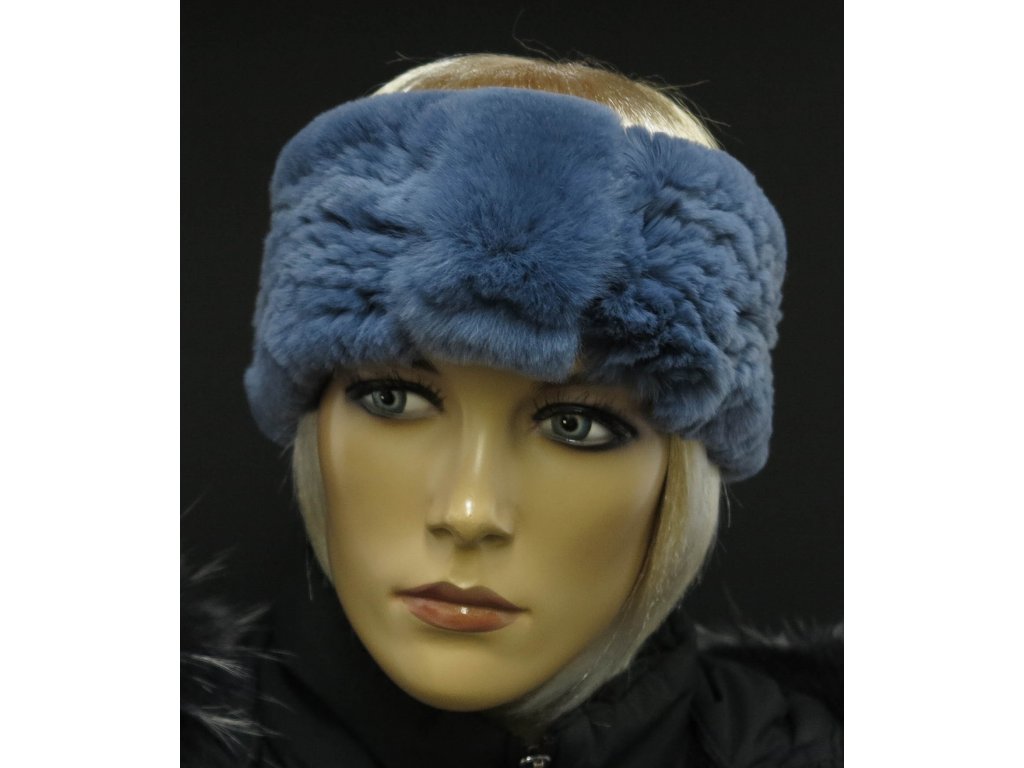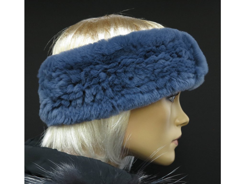 Pružný kožešinový nákrčník a čelenka v jednom z barveného stříhaného králíka plemene rex. Králík rex je ceněný pro svoji hustou, kolmo rostoucí a na dotek velmi jemnou srst. Nejčastěji se z něj vyrábí kožichy.