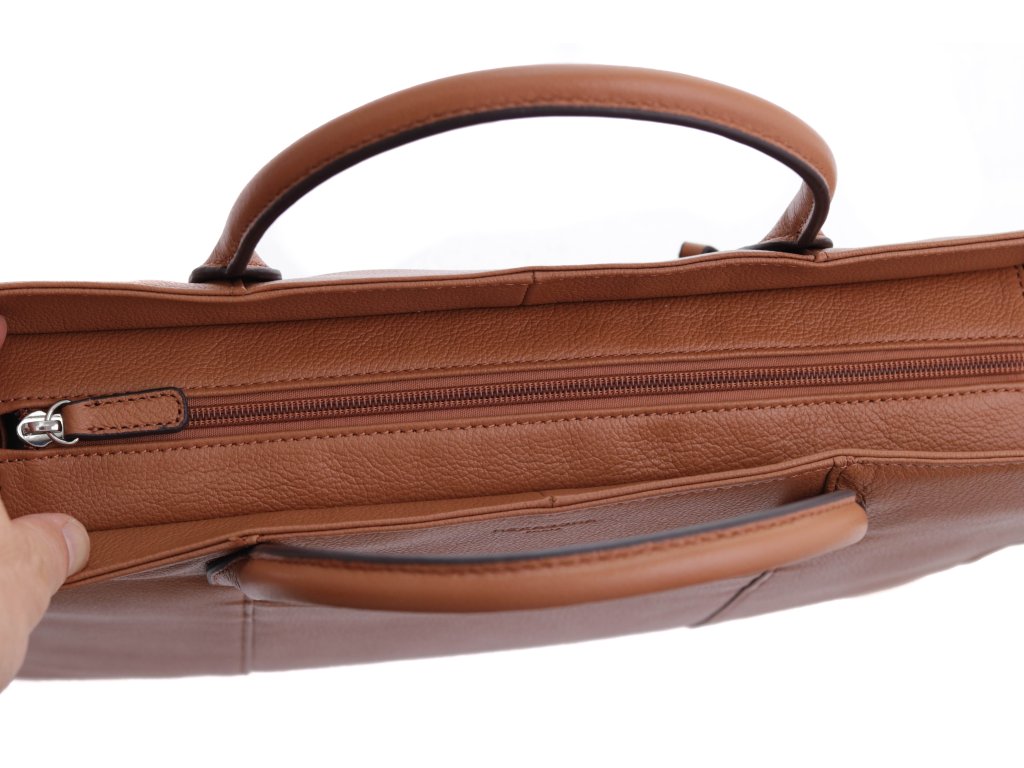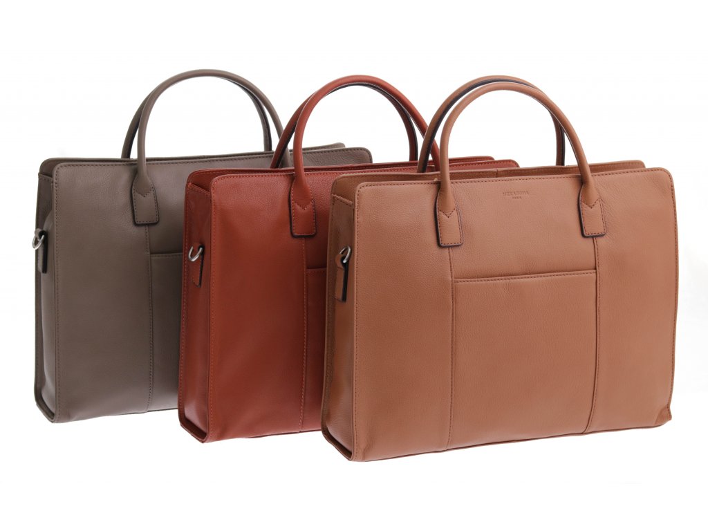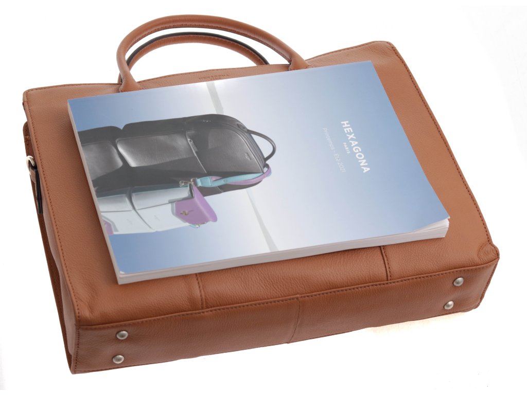 Dámská kožená aktovka od francouzské značky Hexagona je vyrobena z hladké hověziny polomatného vzhledu.