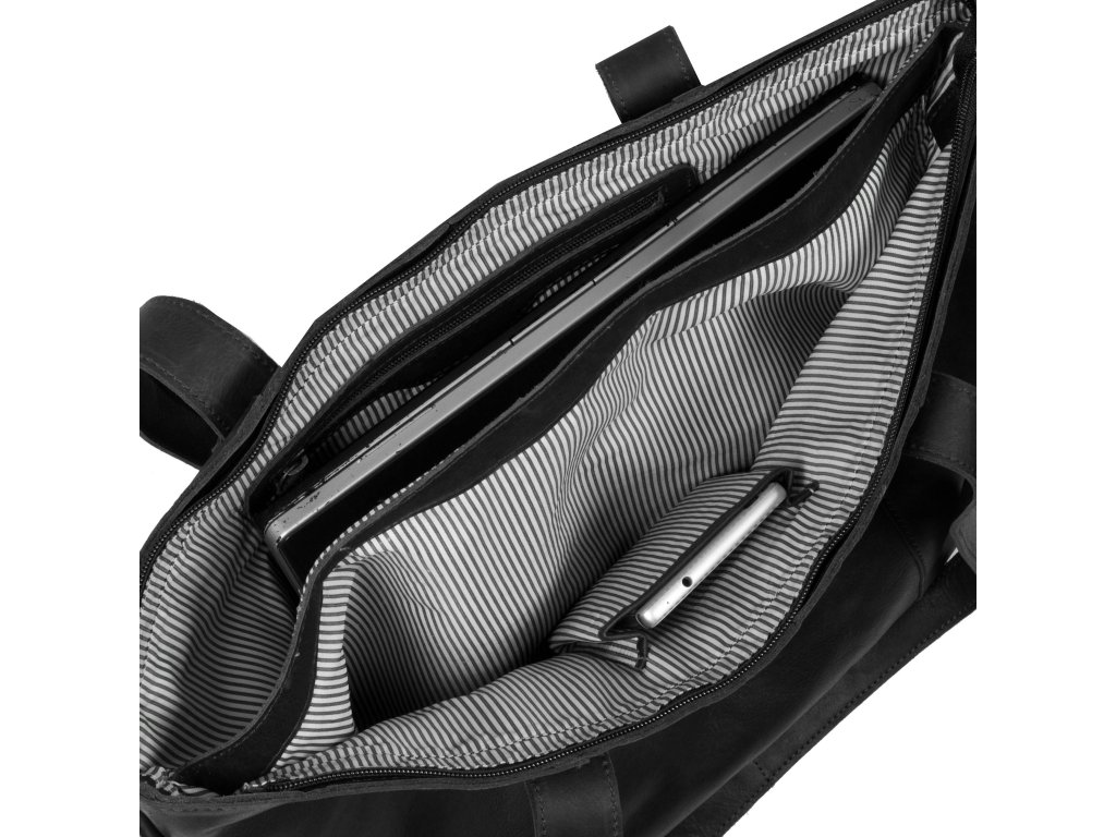 Velká kožená taška "shopper" z pravé kůže vyniká svojí prostorností a kvalitním materiálem. Kůže na této kabele je velmi masivní a pevná hovězina, která dobře drží tvar. Díky svému neutrálnímu designu je to kabelka na každý den do práce i na nákup. Uvnitř najdete oku lahodící proužkovanou podšívku, dostatek volného prostoru a potřebné přihrádky. Pro někoho přijde vhod i připínací popruh přes rameno.