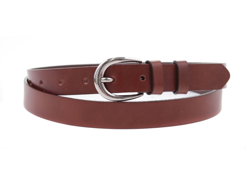 Dámský kožený opasek české výroby zhotovený z kvalitní jemné hověziny. S tímto elegantním úzkým opaskem získáte nadčasový módní doplněk do kalhot nebo přes šaty.