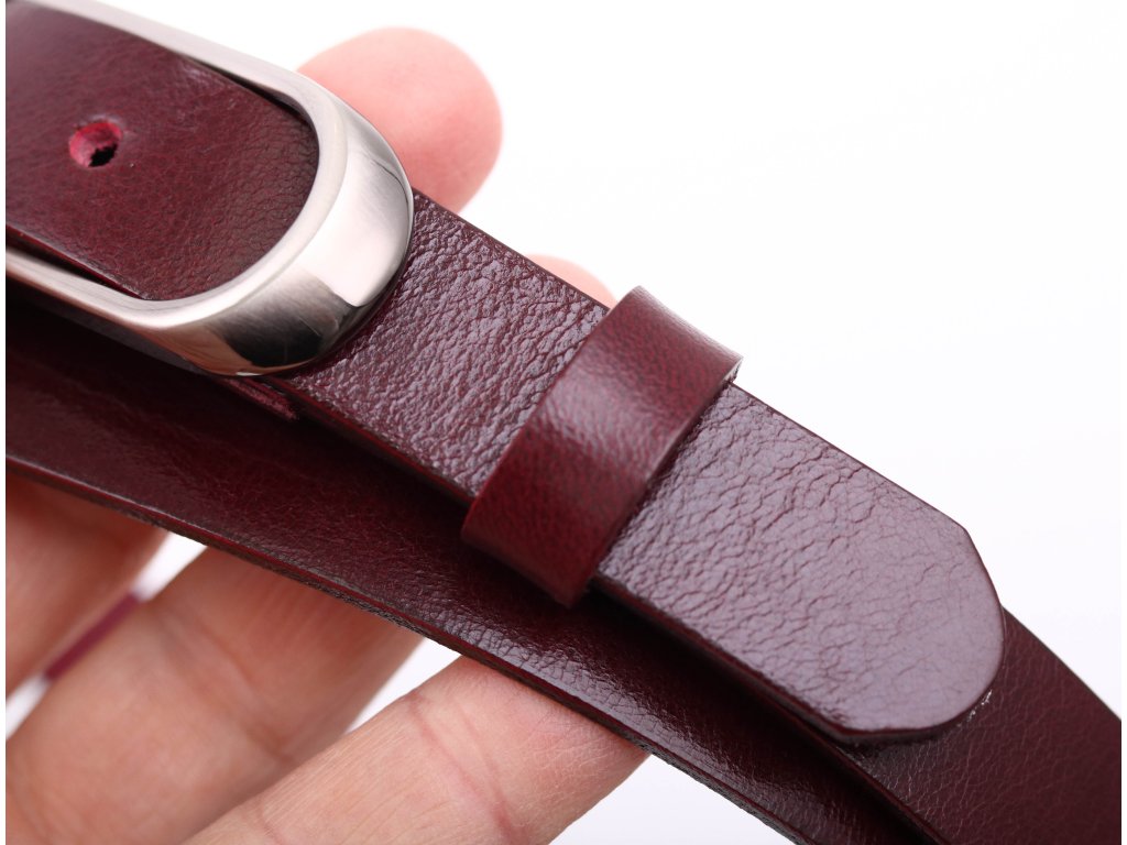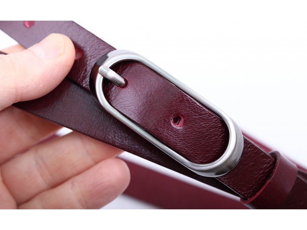 Dámský kožený opasek české výroby zhotovený z kvalitní jemné hověziny. S tímto elegantním úzkým opaskem získáte nadčasový módní doplněk do kalhot nebo přes šaty.