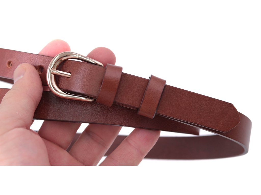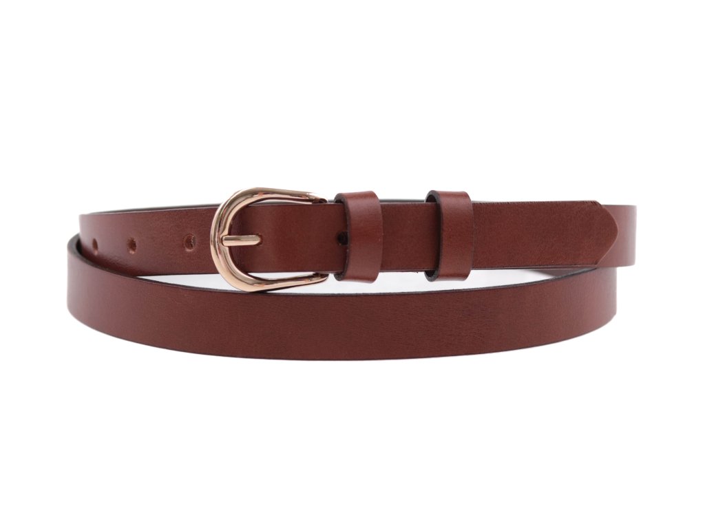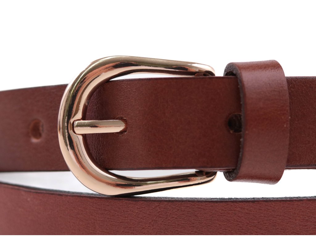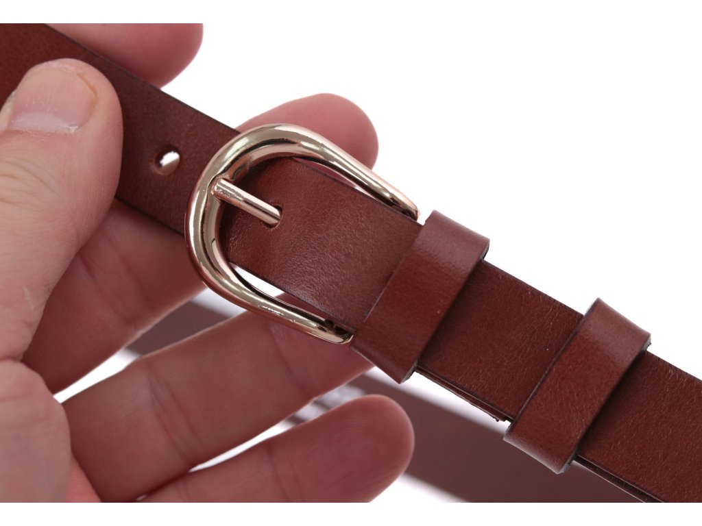 Dámský kožený opasek české výroby zhotovený z kvalitní jemné hověziny. S tímto elegantním úzkým opaskem získáte nadčasový módní doplněk do kalhot nebo přes šaty.
