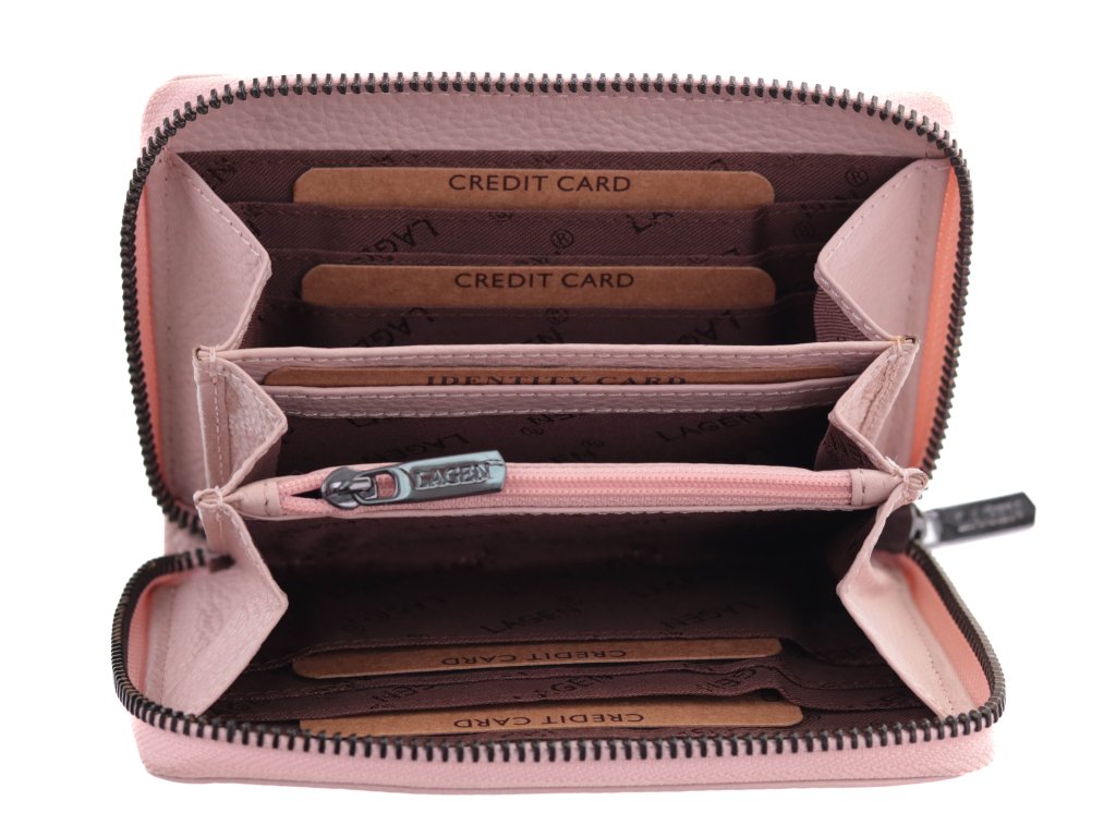 Dámská kožená peněženka Lagen 50309 růžová. Dámské kožené peněženky Lagen jsou kvalitně zpracované a pojmou pojme velké množství karet a dokladů. Peněženky Lagen zaujmou používáním zajímavých barevných kombinací, struktur povrchu a netradičních povrchových úprav usní. Balení peněženky obsahuje dárkovou krabičku od výrobce.