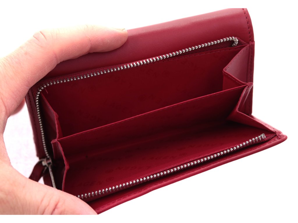 Jednoduchá a elegantní dámská kožená peněženka od kvalitní značky Lagen je vybavena velkým množstvím přihrádek na karty. Určitě oceníte z vnějšku přístupný mincovník na zip.