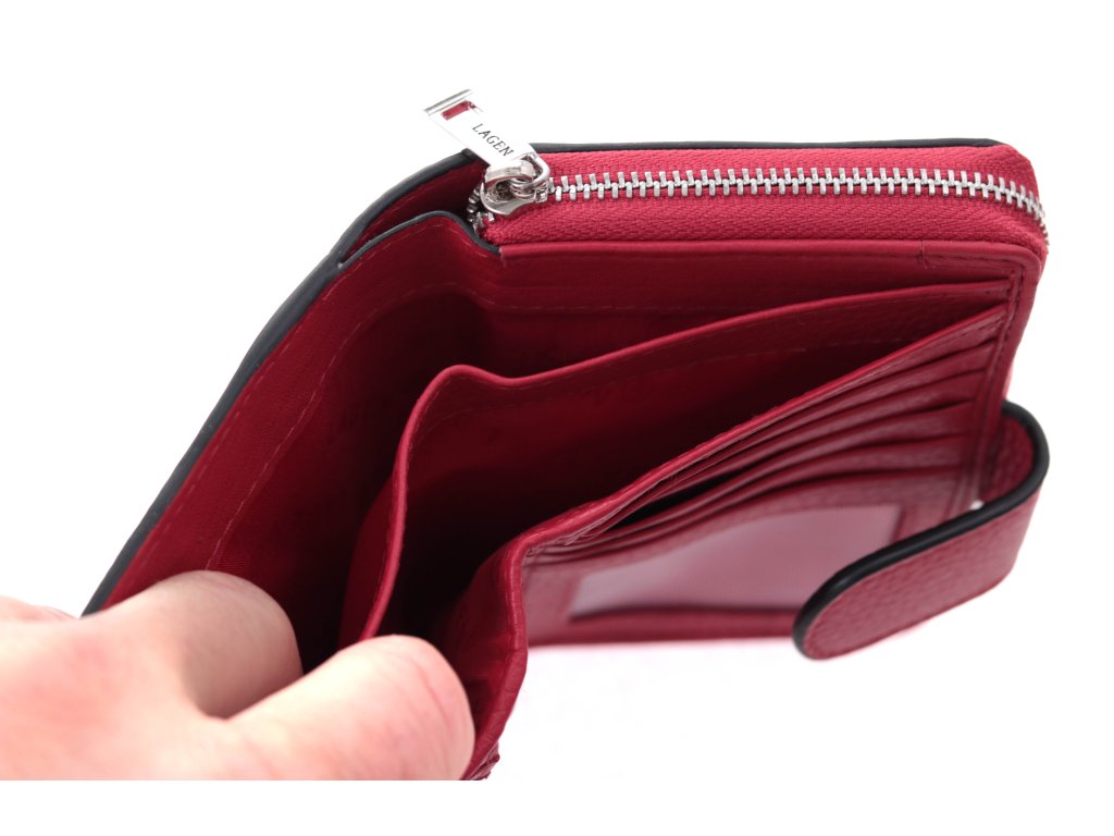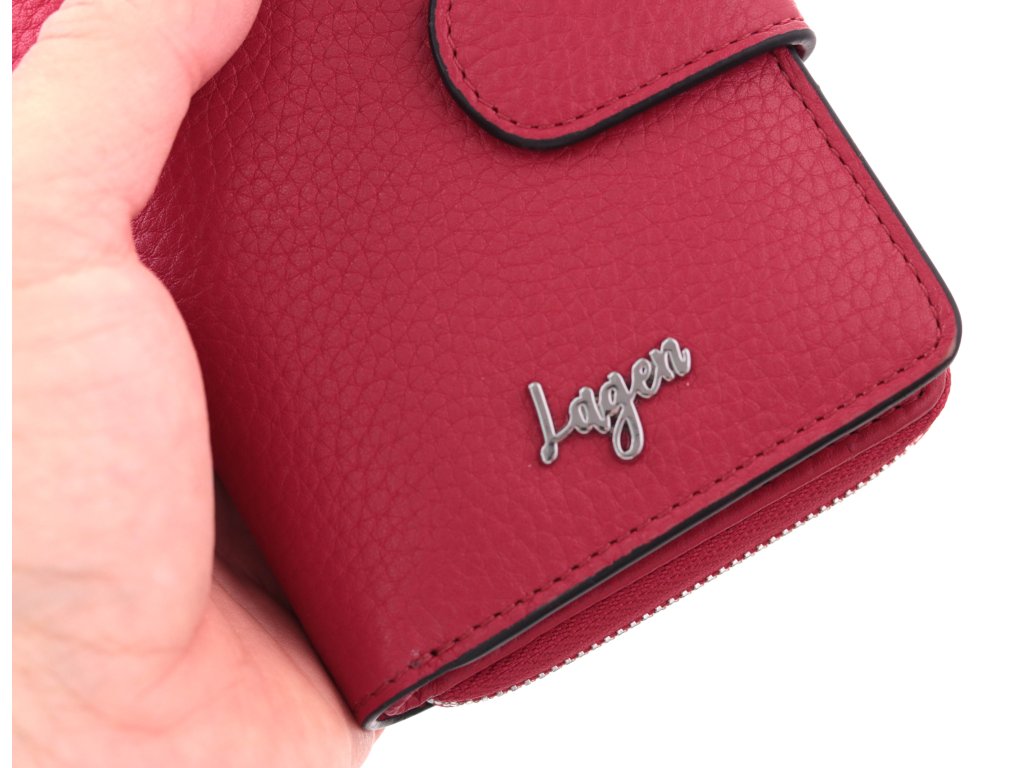 Přední stranu peněženky zdobí kovové logo Lagen. Peněženku obdržíte zabalenou v originální pevné papírové krabičce od výrobce.