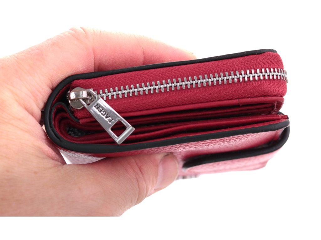 Hezká kožená peněženka se zápinkou proti otevření je dobře vybavená a obsahuje dostatečné množství přihrádek na doklady a kartičky. Hlavní předností této peněženky orientované na výšku.