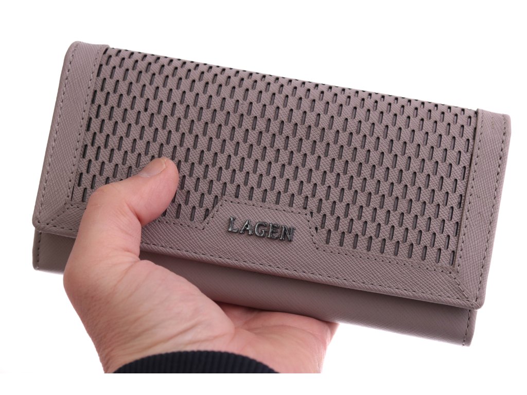 Dámská peněženka Lagen zaujme výrazným perforováním, které jí dodává osobitý charakter a jedinečný styl. Vyrobena je z kvalitní kůže se saffiano texturou, jež kombinuje odolnost s elegantním vzhledem. Výsledek? Svěží a originální doplněk, který neunikne pozornosti.