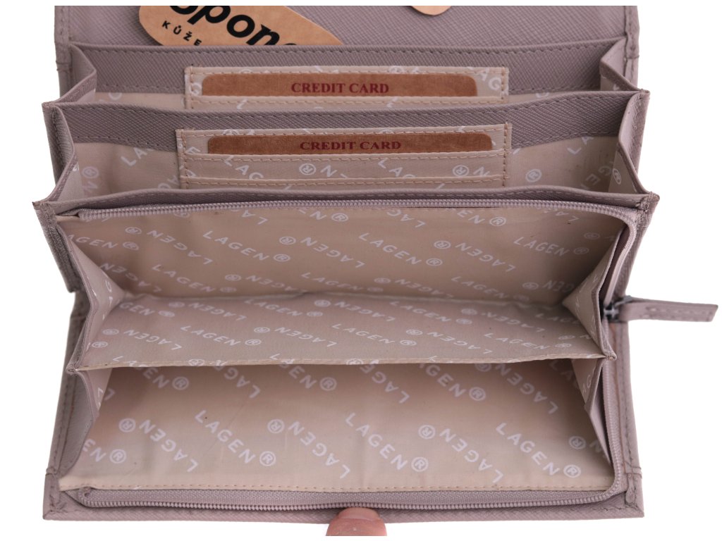 Prostorné členění pojme karty, doklady, bankovky i mince, vše přehledně na dosah. Kvalitní zpracování a pevná konstrukce zaručují dlouhou životnost.