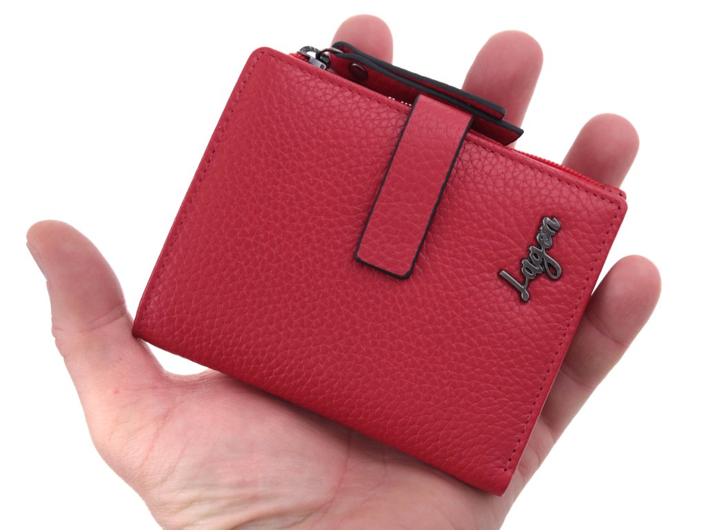 Přední stranu peněženky zdobí kovové logo Lagen. Peněženku obdržíte zabalenou v originální pevné papírové krabičce od výrobce.