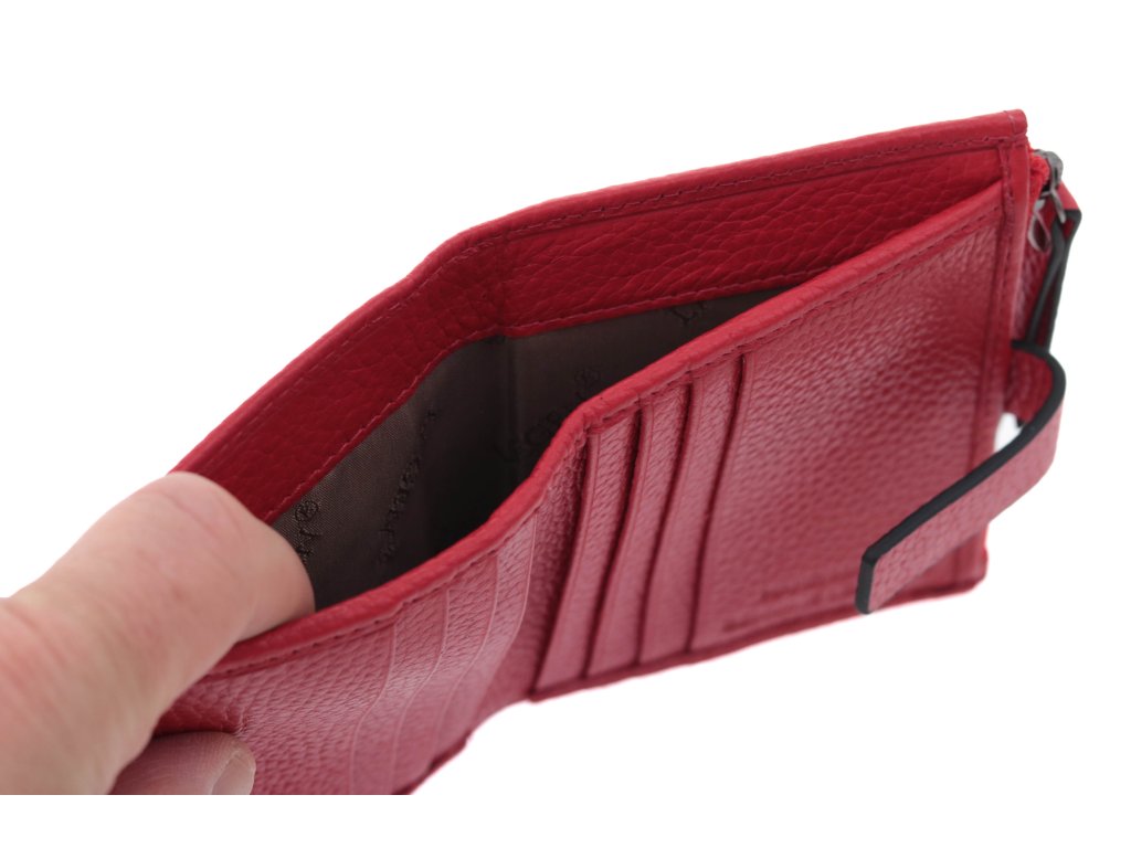 Hezká kožená peněženka se zápinkou proti otevření je dobře vybavená a obsahuje dostatečné množství přihrádek na doklady a kartičky. Hlavní předností této peněženky orientované na výšku.