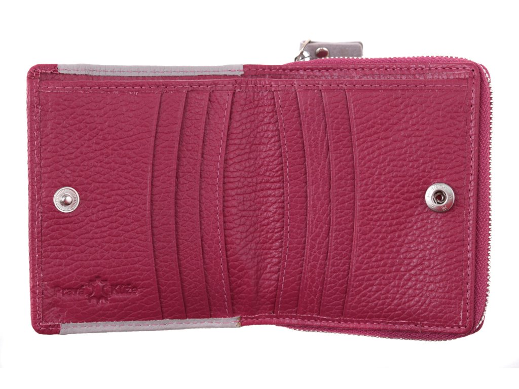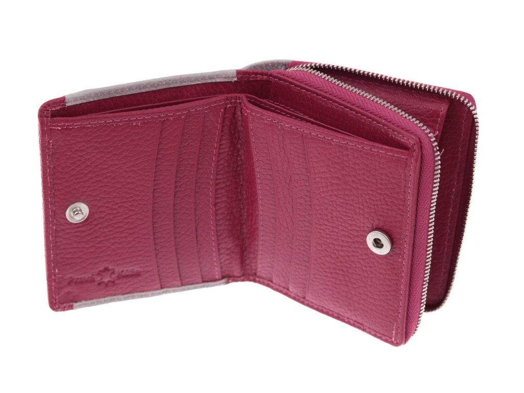 Malá, skladná a dvoubarevná - to charakterizuje tuto peněženku, která je šikovně vymyšlena. Má dva úložné prostory - mincovník přístupný zvenku se zapínáním na zip a prostor na bankovky a doklady se zapínáním na patent.