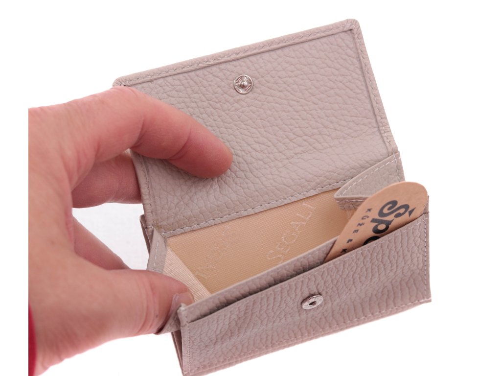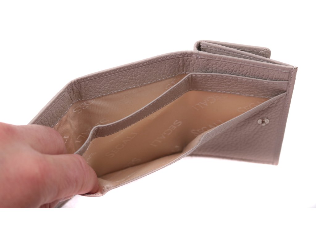 Malá kožená peněženka od značky Segali jejíž předností je její skladná velikost a z vnějšku přístupný mincovník. Tato peněženka malých rozměrů je vyrobena z kvalitní hladké hověziny, která je jemná a velmi příjemná na omak.