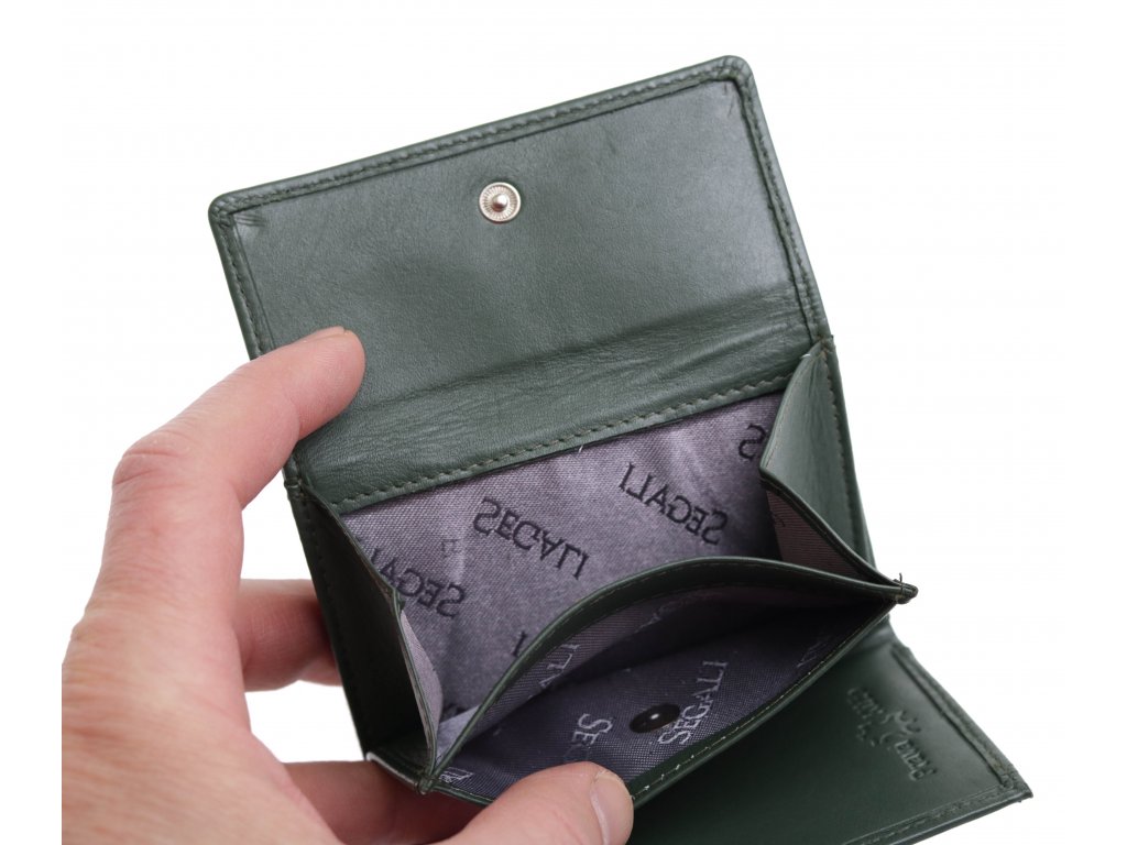 Malá kožená peněženka od značky Segali jejíž předností je její skladná velikost a z vnějšku přístupný mincovník. Tato peněženka malých rozměrů je vyrobena z kvalitní hladké hověziny, která je jemná a velmi příjemná na omak.