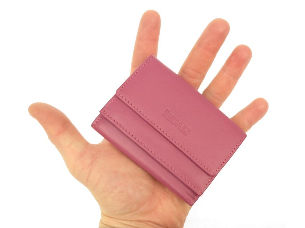 Malá kožená peněženka od značky Segali jejíž předností je její skladná velikost a z vnějšku přístupný mincovník. Tato peněženka malých rozměrů je vyrobena z kvalitní hladké hověziny, která je jemná a velmi příjemná na omak.