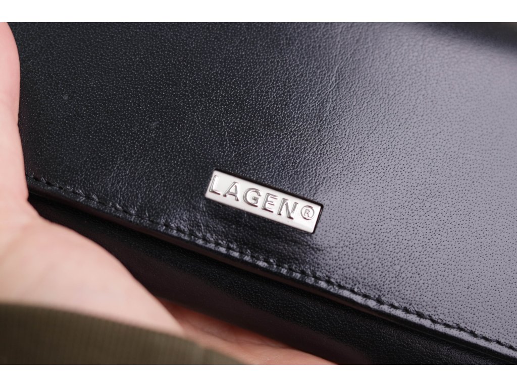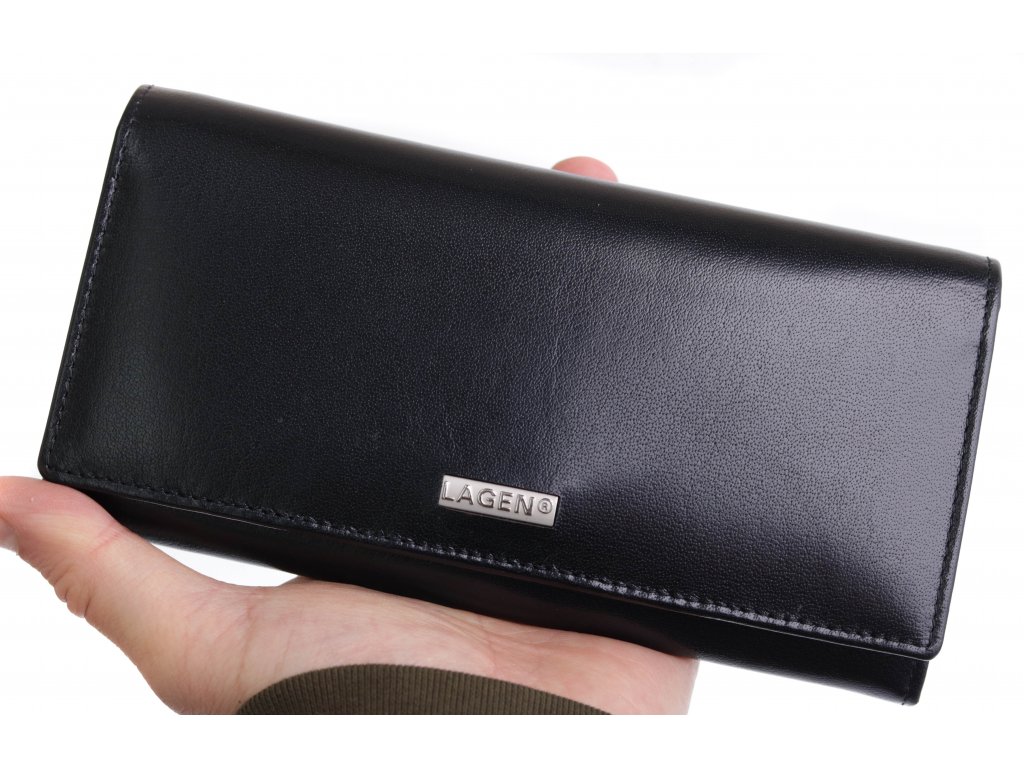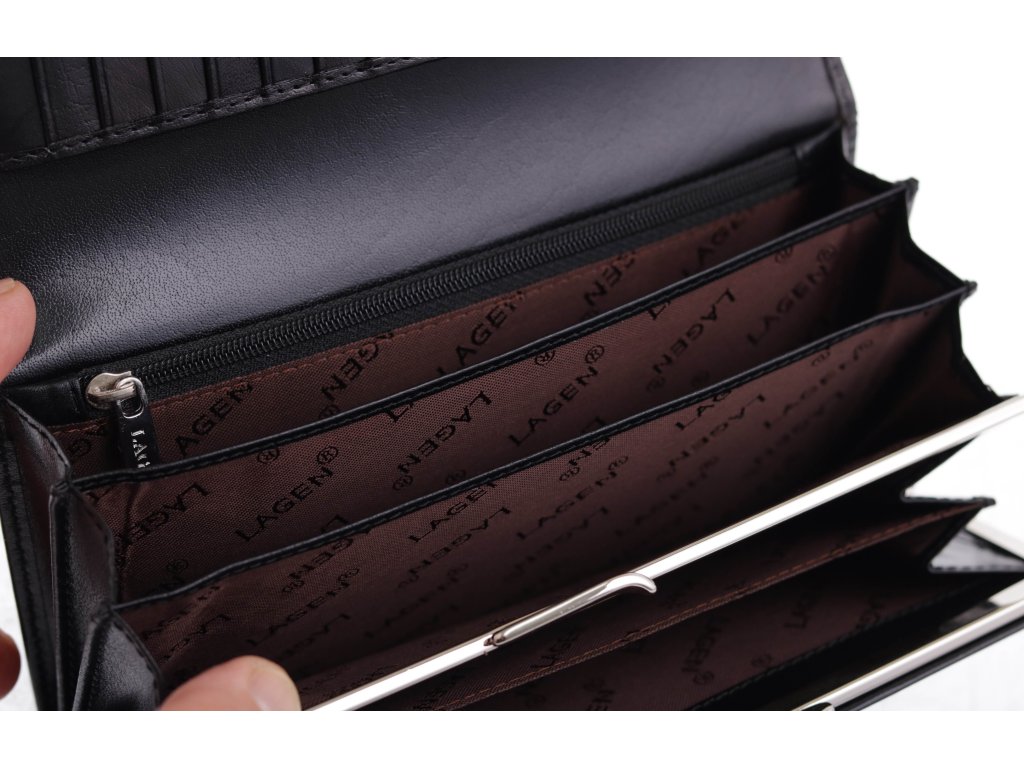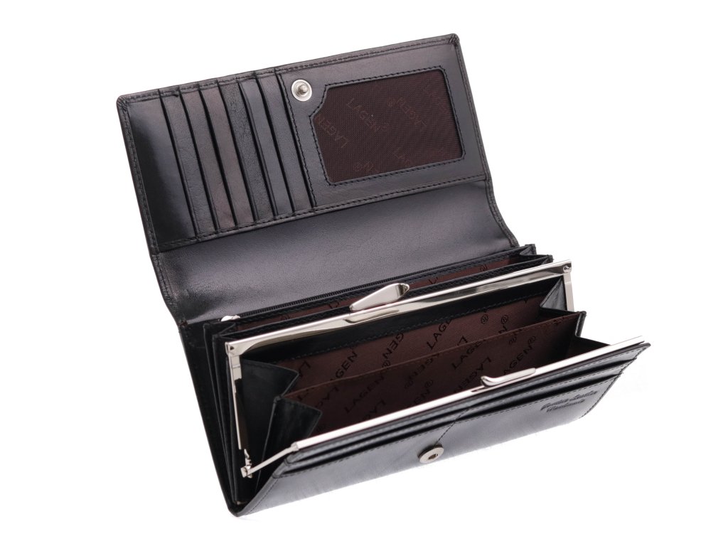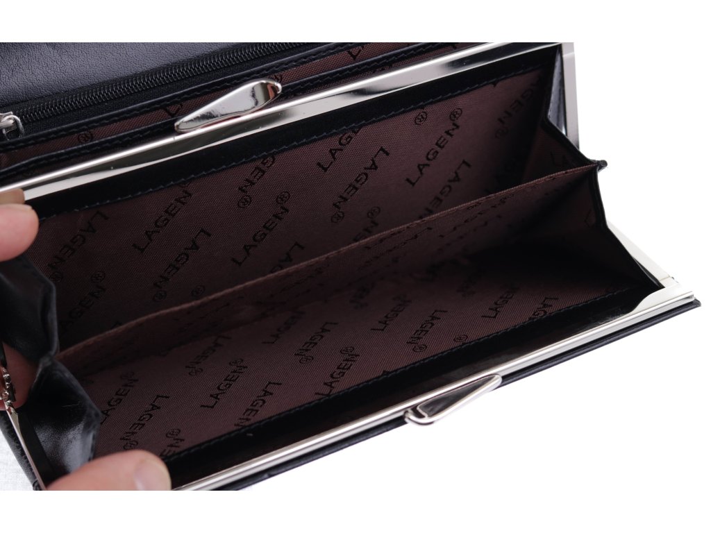 Velká dámská kožená peněženka Lagen 50039 BLK rámková černá