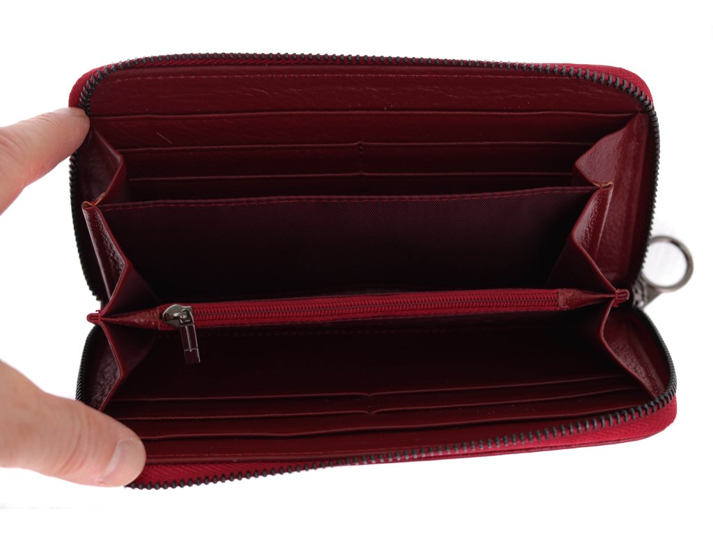 Velká dámská kožená peněženka na zip Carmelo 2127 vínová