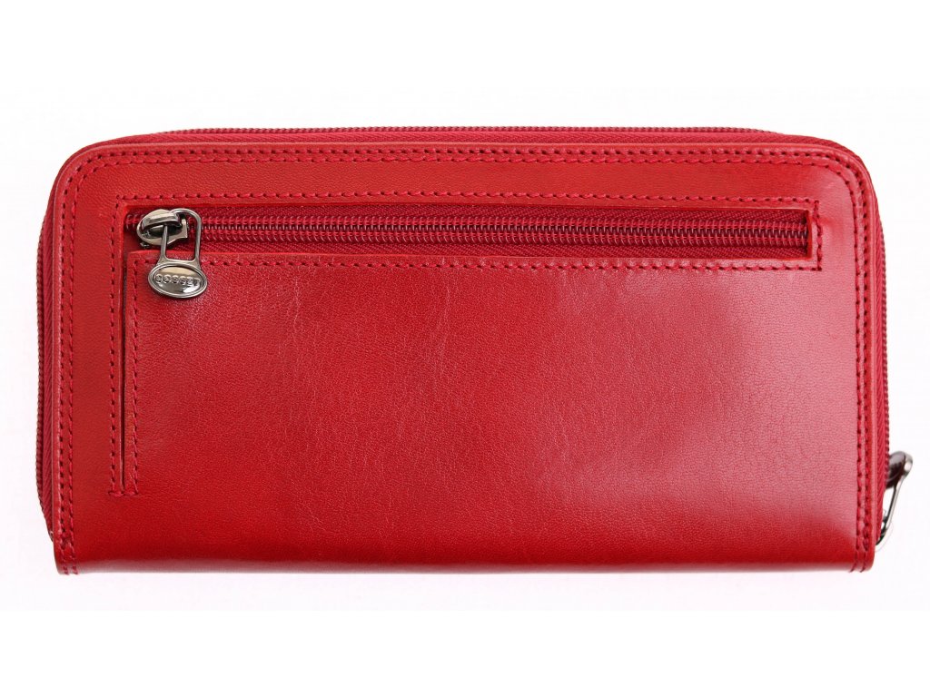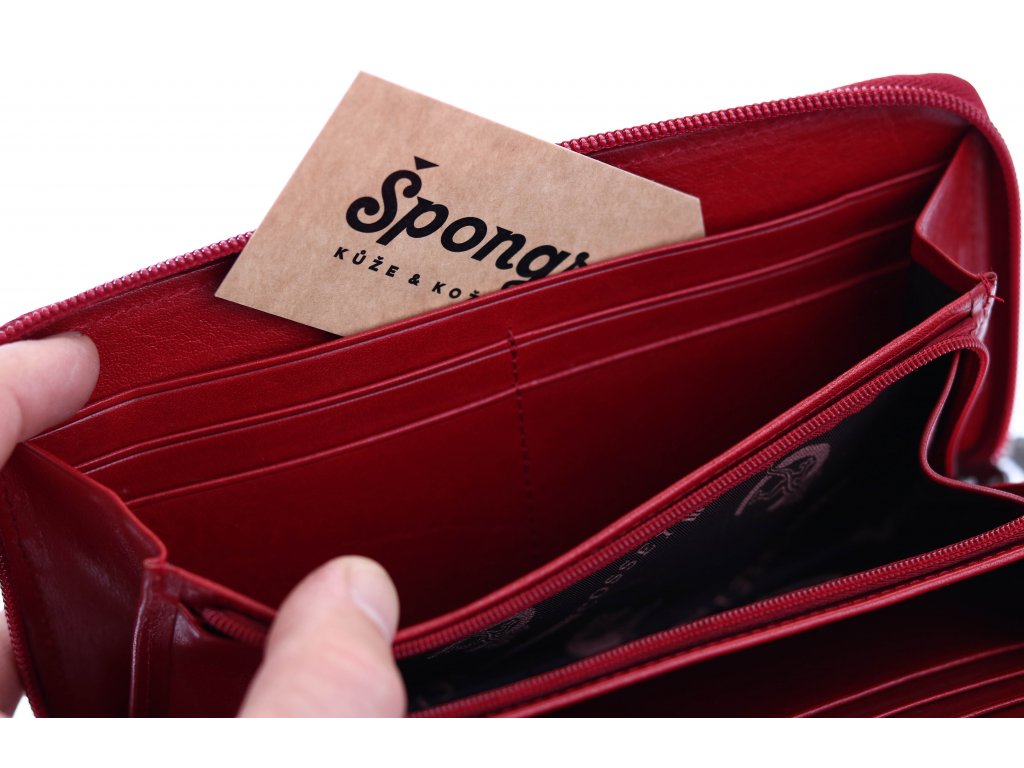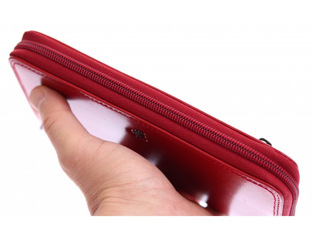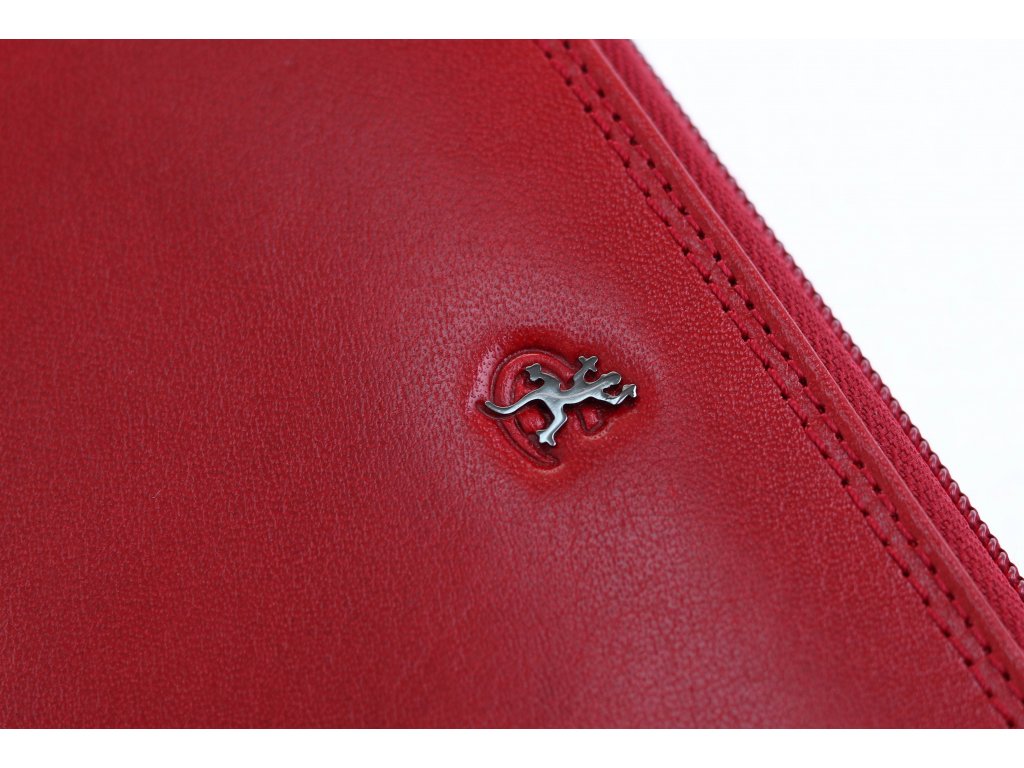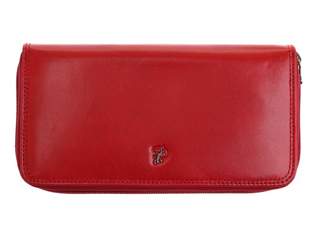 Luxusní velká kožená peněženka na zip v červené barvě překvapí přehledným uspořádáním a velkým množstvím přihrádek pro vaše doklady a různé karty. Předností této dámské kožené peněženky je její tvar penálu a zip, který zajišťuje okamžitý přístup k vašim penězům a dokladům.