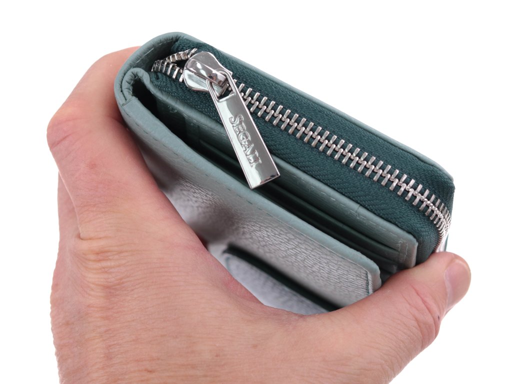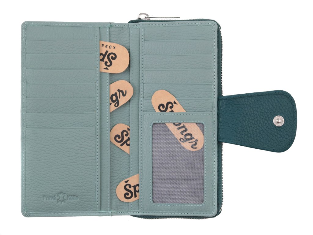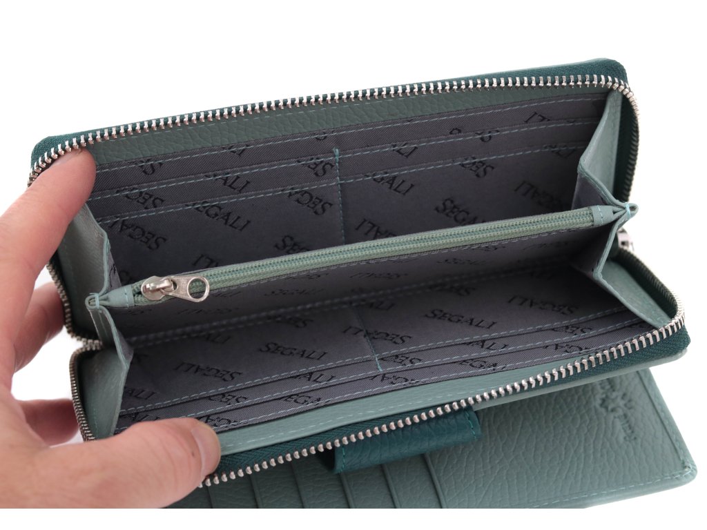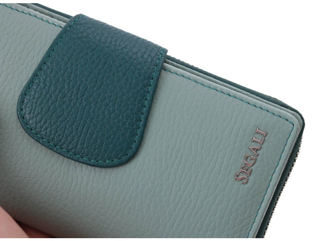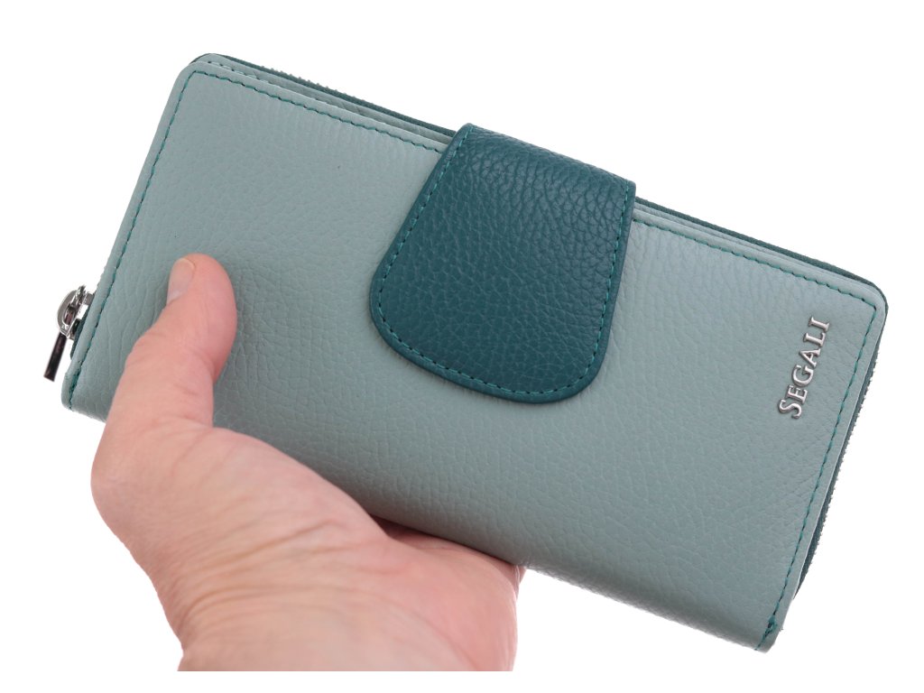 Velká dámská kožená peněženka Segali 7617 Sage zelená s petrolejovou