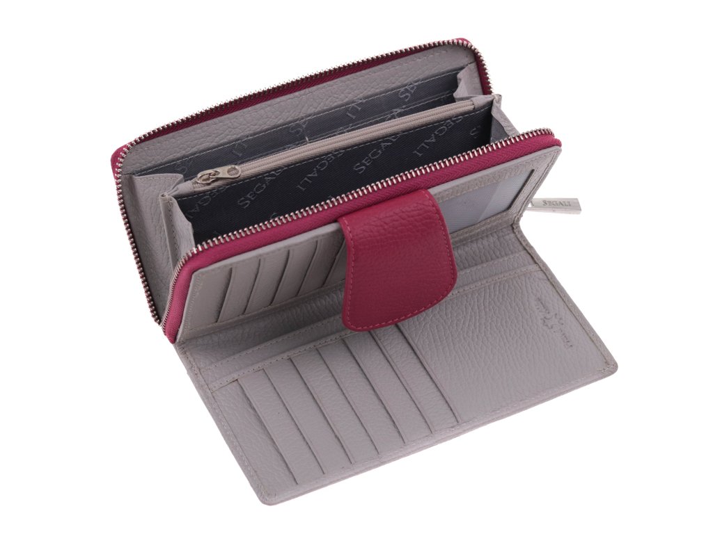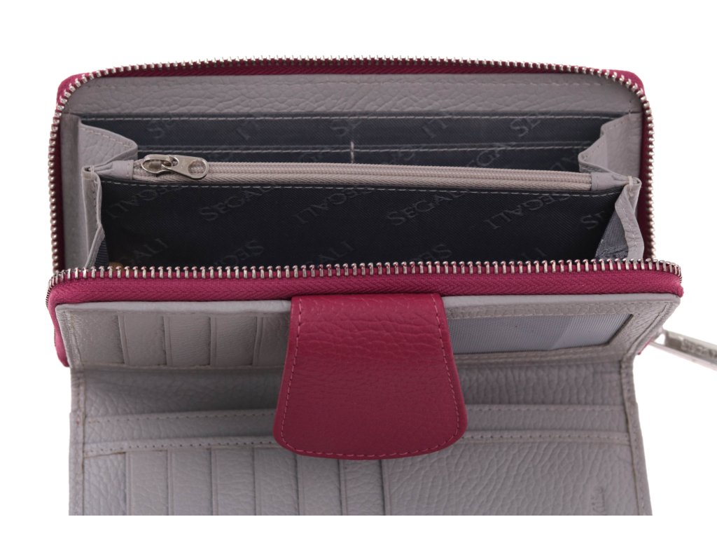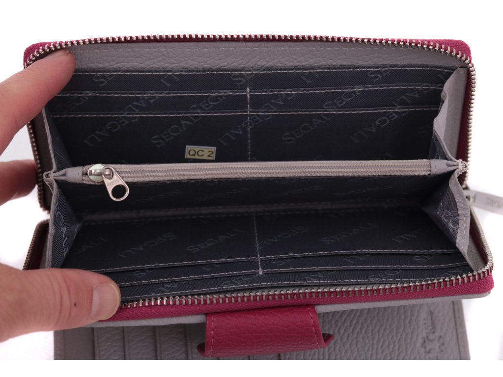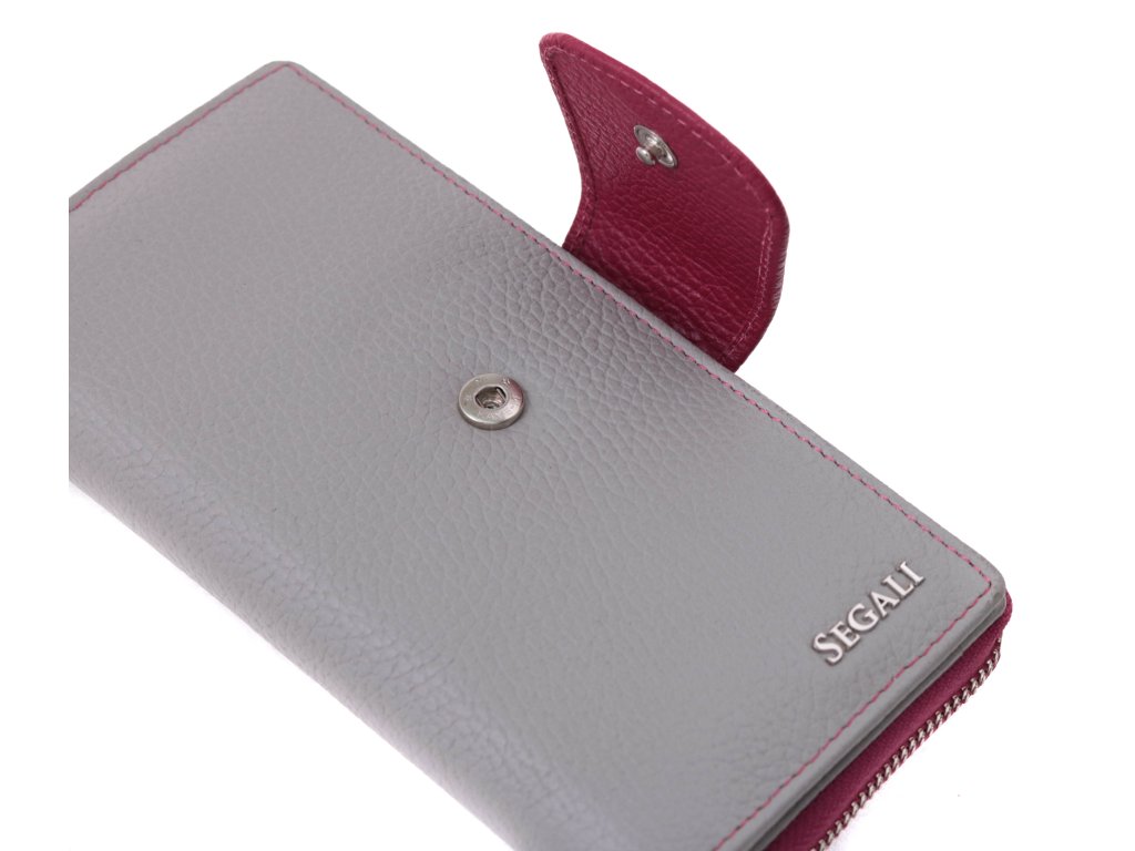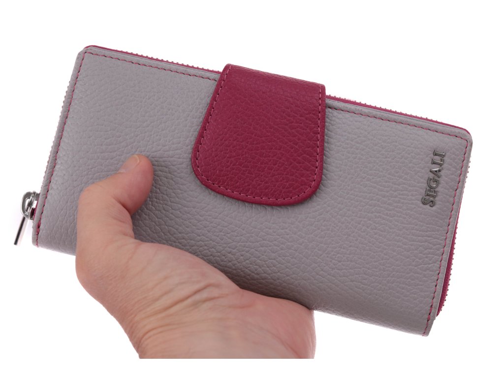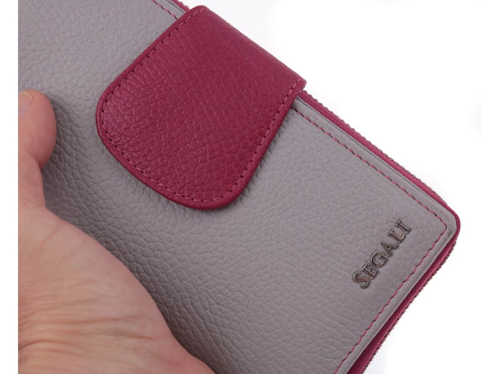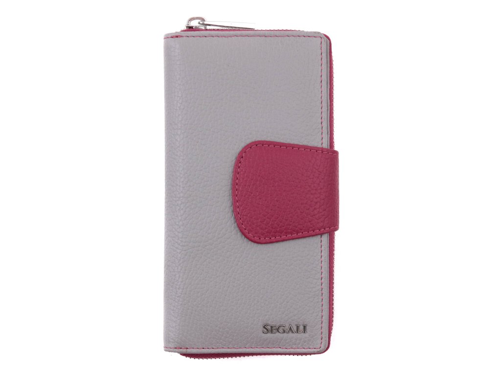Velká dámská kožená peněženka Segali 7617 šedá s růžovou
