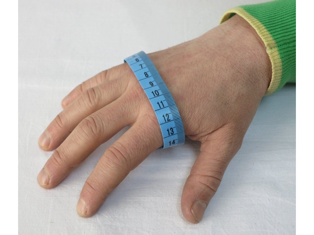 Změřte obvod dlaně vůdčí ruky (pravák pravou, levák levou) krejčovským metrem, tak jak je vidět na obrázku ve fotogalerii. Dlaň změřte v nejširší části kolem mírně vyklenutých záprstních kloubů. Naměřený obvod dlaně v centimetrech porovnejte s údaji v tabulce níže a zjistíte velikost rukavic ve francouzských coulech.
