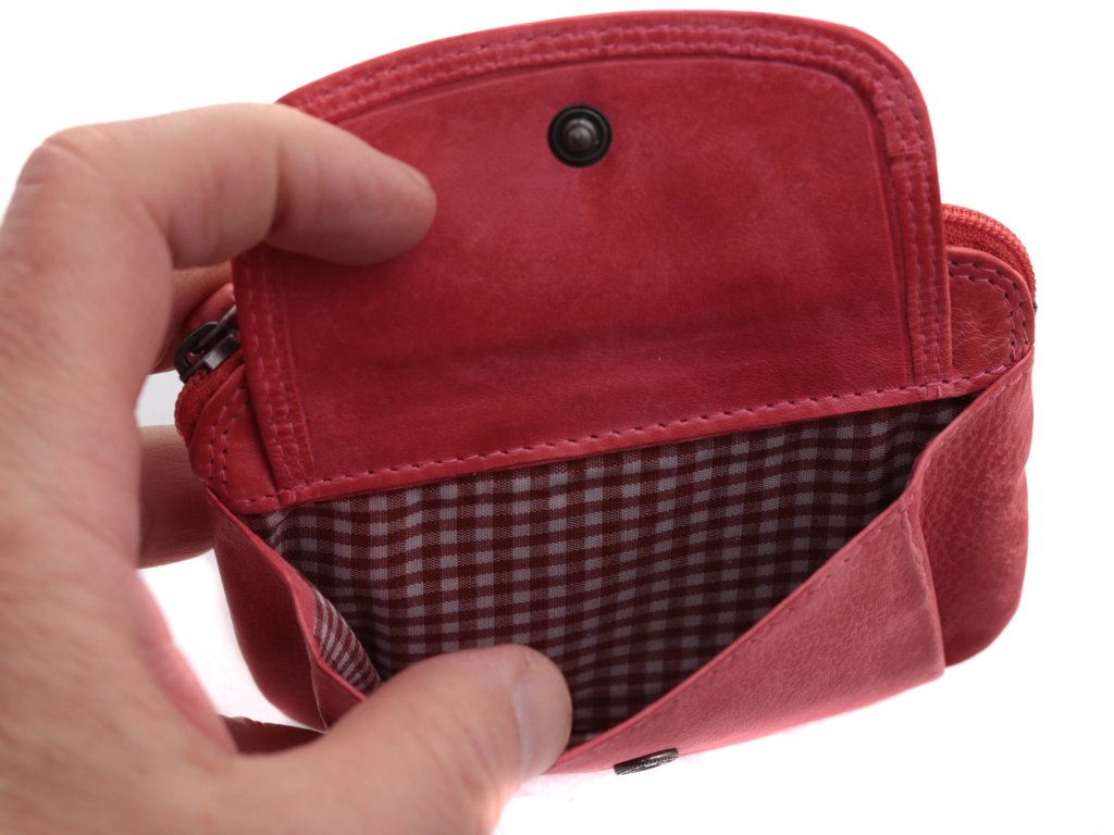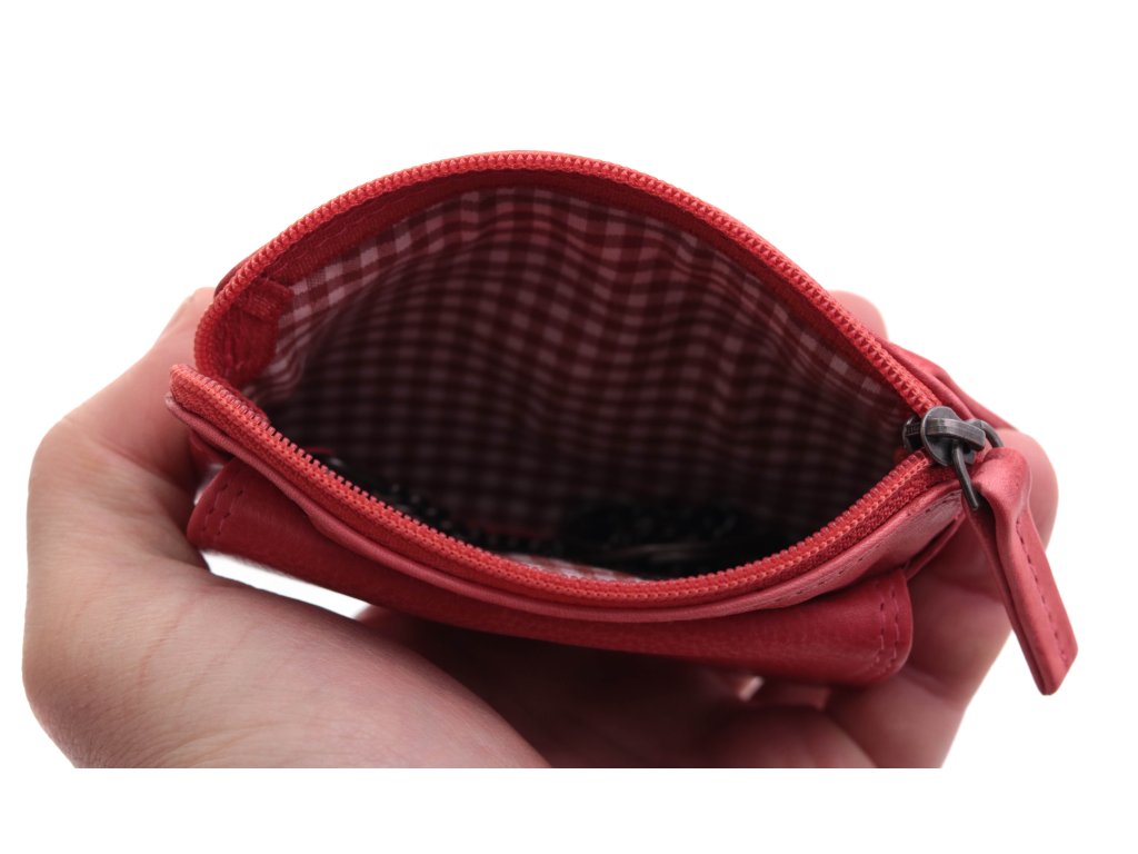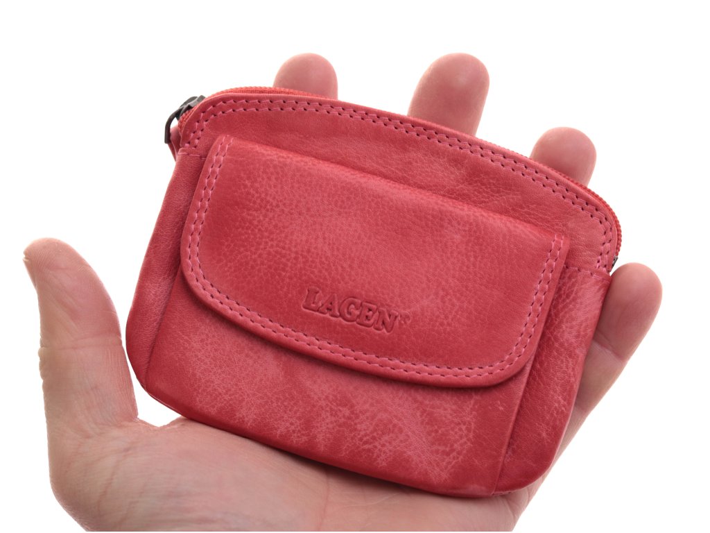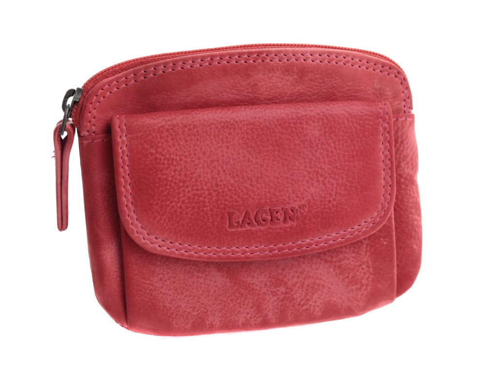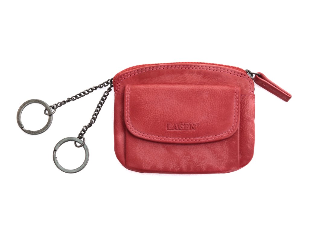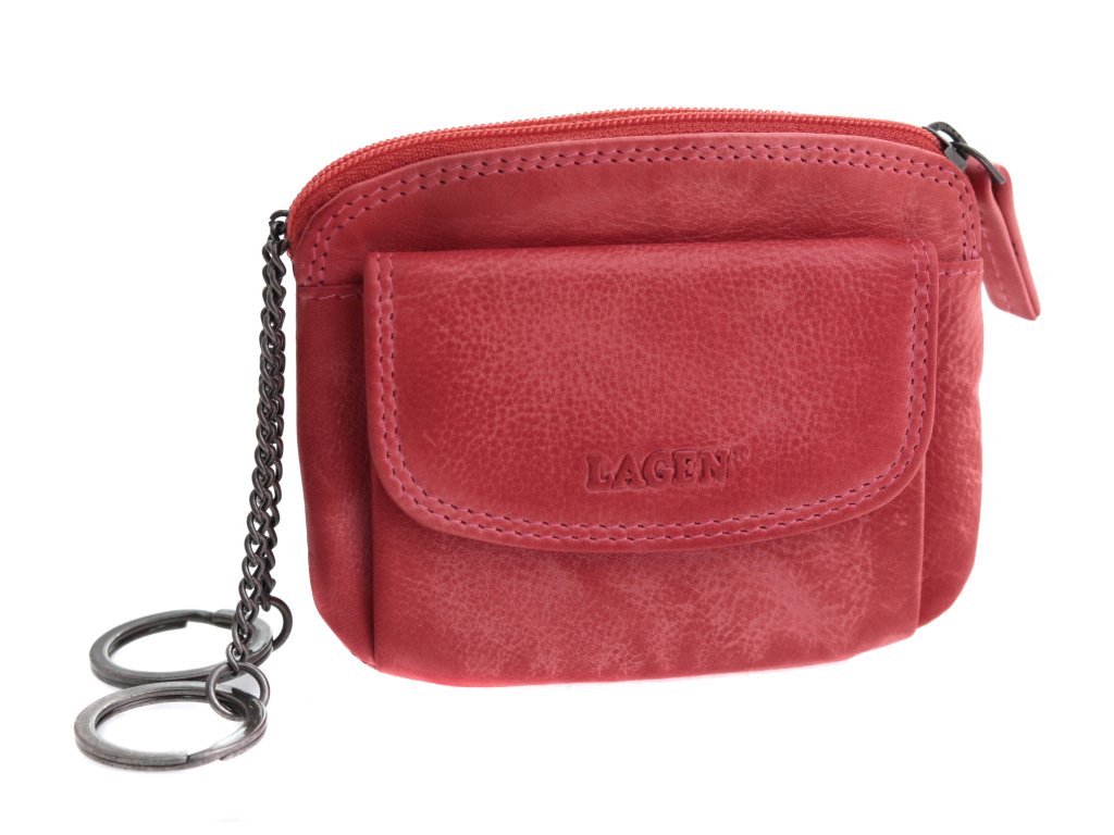 Dámská kožená klíčenka na zip Lagen 786382 s dvěma kroužky na řetízku pro připnutí klíčů. Klíčenka má na přední straně kapsičku klopnou + na zadní straně zipovou kapsu.