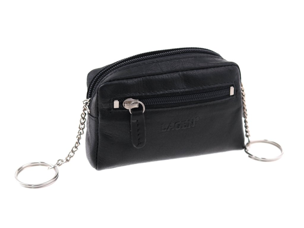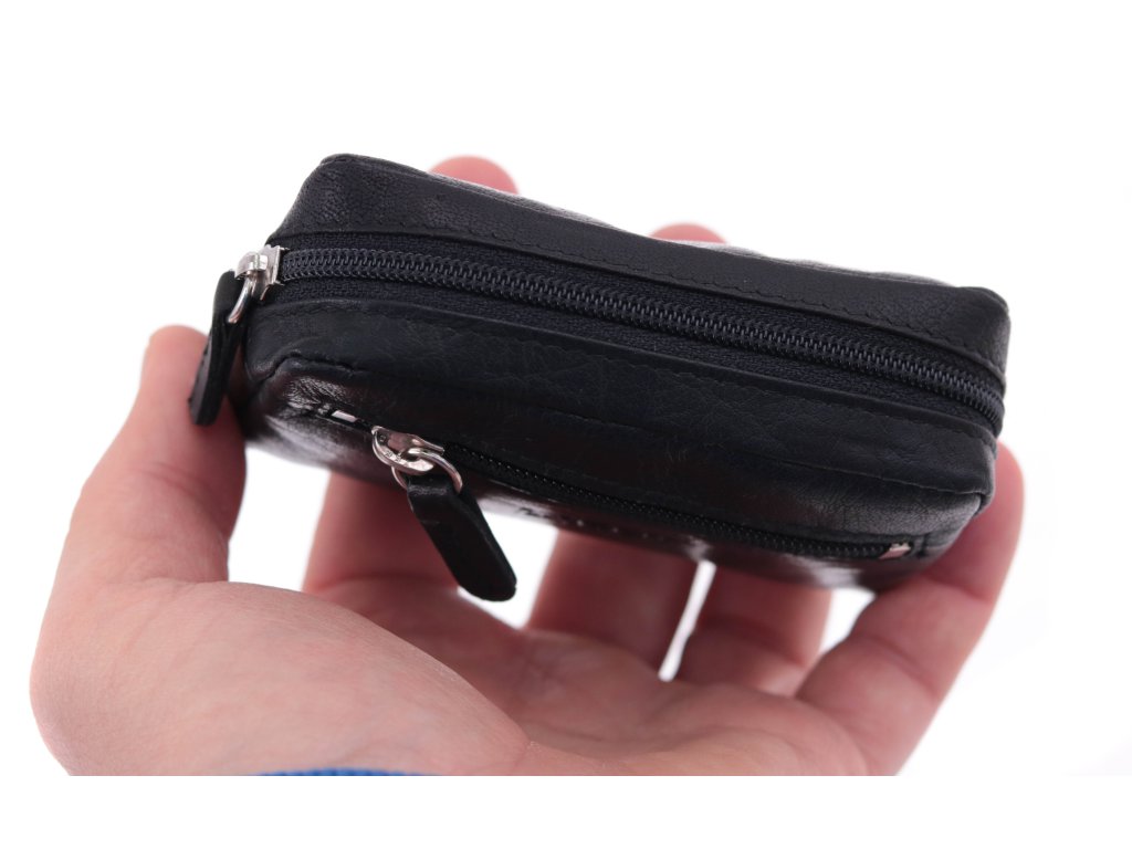 Dámská kožená klíčenka na zip se dvěma kovovými kroužky. Na přední straně má klíčenka malou kapsičku na zip.