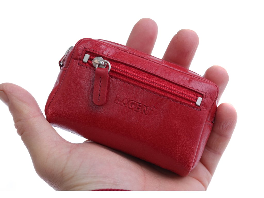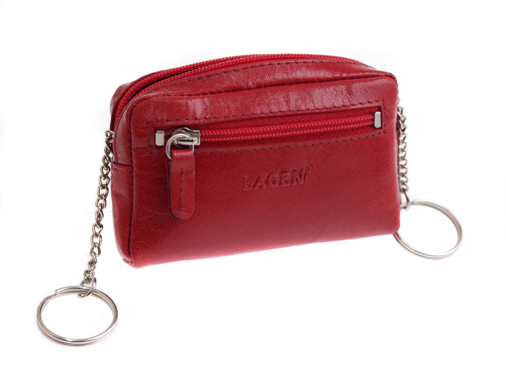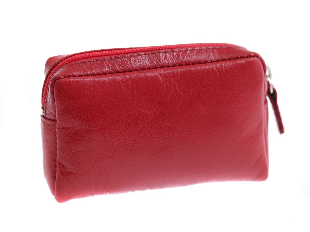 Dámská kožená klíčenka na zip se dvěma kovovými kroužky. Na přední straně má klíčenka malou kapsičku na zip.