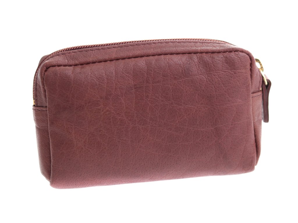 Dámská kožená klíčenka na zip se dvěma kovovými kroužky. Na přední straně má klíčenka malou kapsičku na zip.