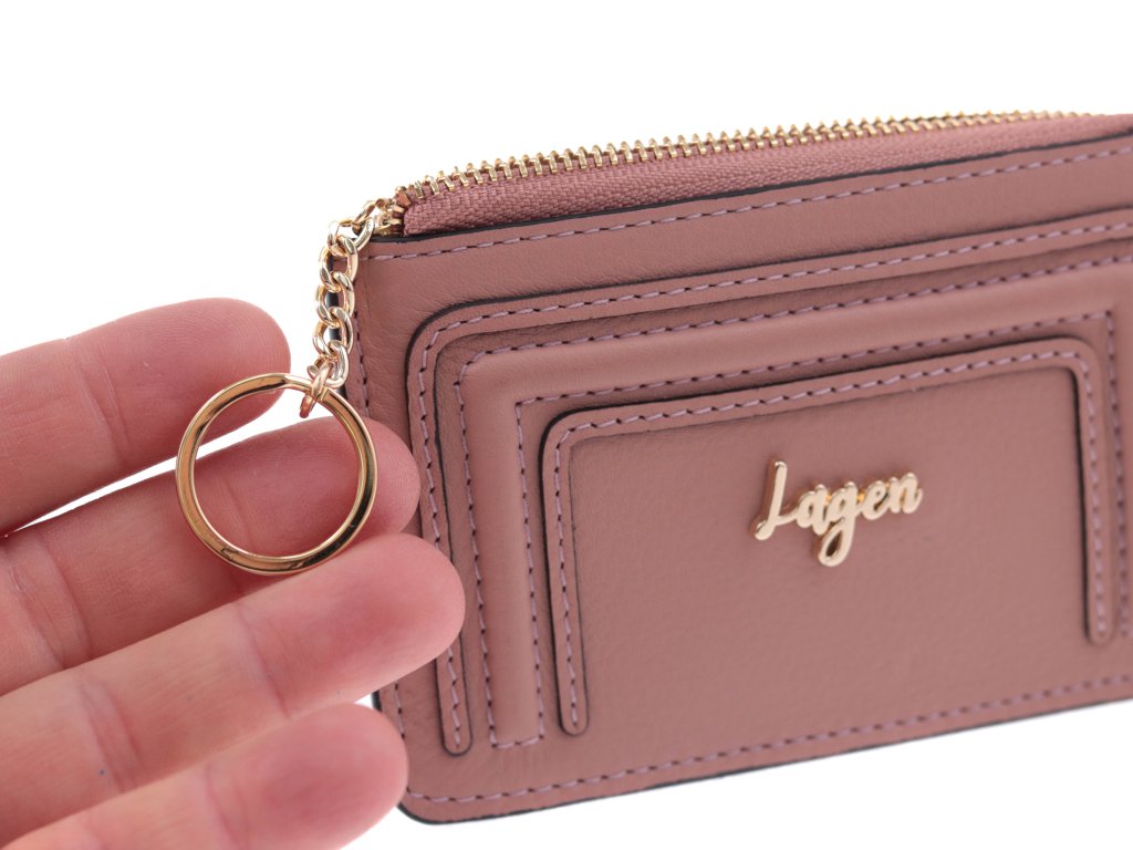 Kvalitní kožená klíčenka Lagen. Klíčenka obsahuje uvnitř hlavní přihrádky kovový řetízek s kovovým kroužkem na klíče.