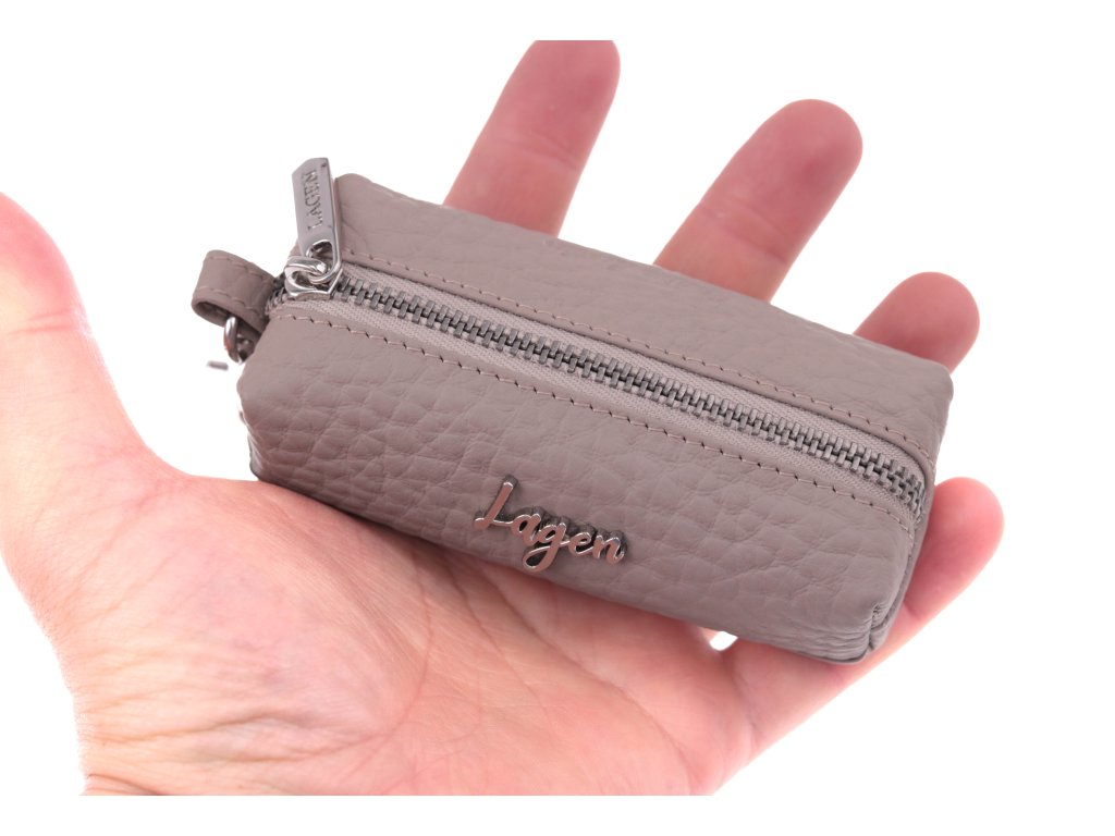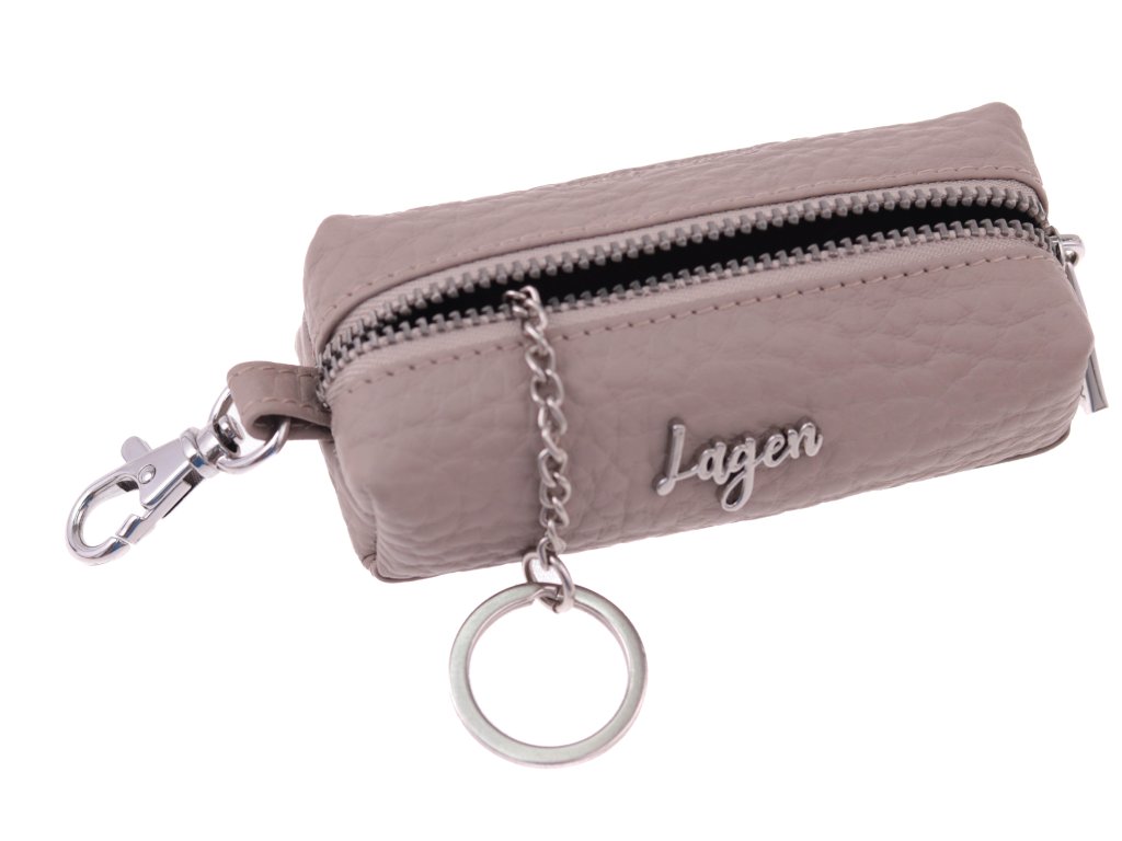 Kvalitní kožená klíčenka Lagen. Klíčenka obsahuje uvnitř hlavní přihrádky kovový řetízek s kovovým kroužkem na klíče.