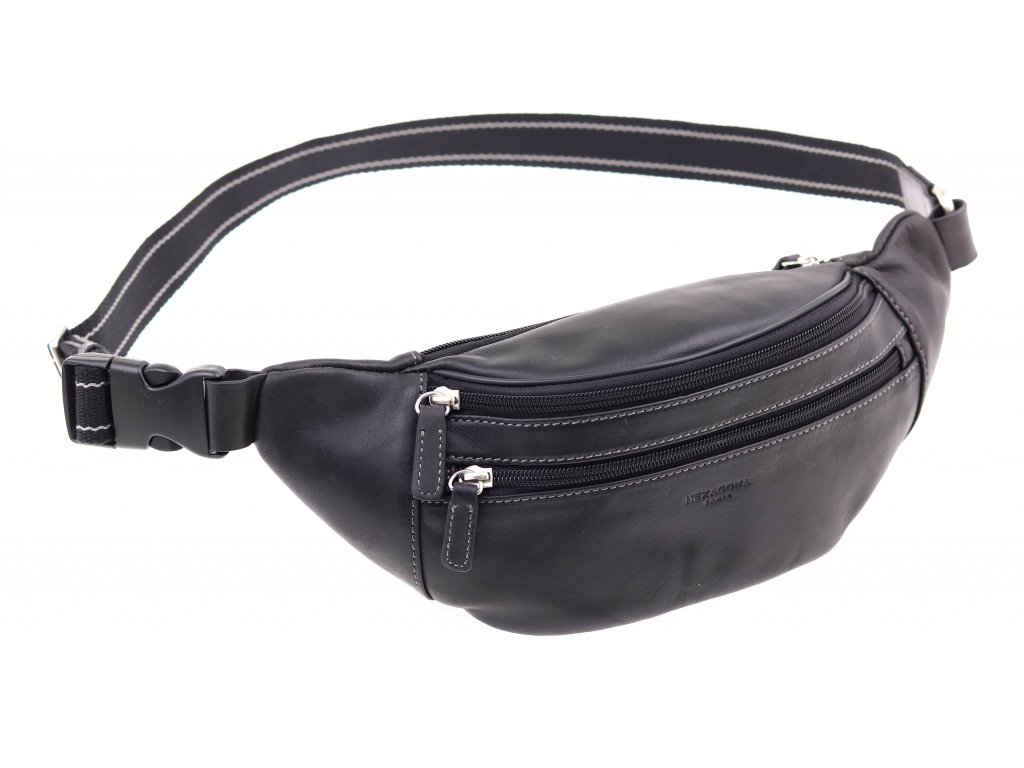 Pánská kožená ledvinka z černé kůže od značky Hexgona.