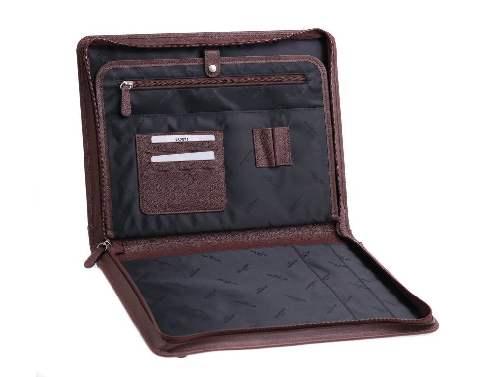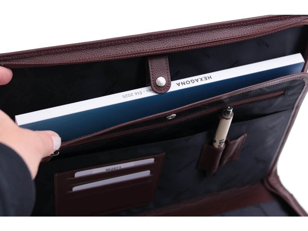 Kvalitní kožená spisovka na dokumenty A4 a na počítač pojme vše nejnutnější pro vaše obchodní schůzky. Tato spisovka má pevné vypolstrované desky, takže je bezpečná pro uložení počítače o velikosti 13''.