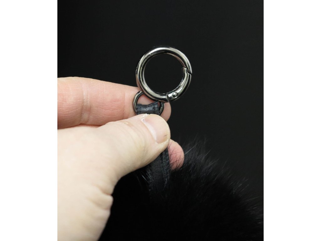 Kožešinová bambule je opatřena kruhovou karabinou a řetízkem k připnutí na tašku, na kabelku, na zip kapsy, na klíče, u kalhot za poutko pásku atd...