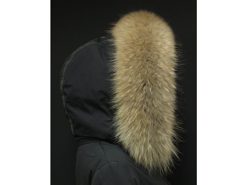 Na výrobu kožešinových lemů používáme pravou kožešinu z finského mývalovce Saga Royal – to znamená certifikovanou a vždy tu nejlepší kvalitu kožešiny, která se vyznačuje maximální hustotou (bohatostí) a dlouhým vlasem.
