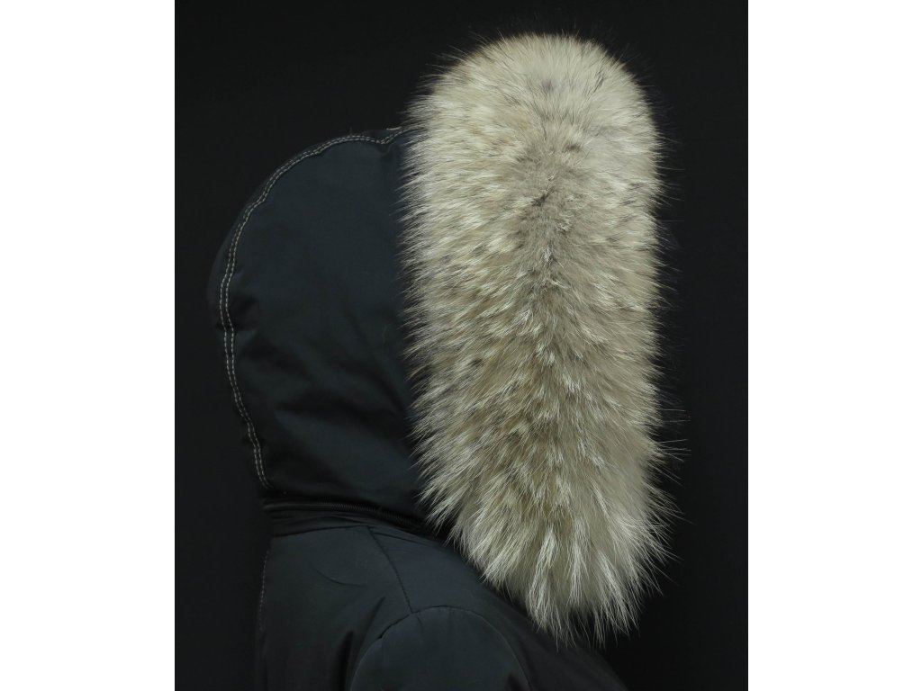 Na výrobu kožešinových lemů používáme pravou kožešinu z finského mývalovce Saga Royal – to znamená certifikovanou a vždy tu nejlepší kvalitu kožešiny, která se vyznačuje maximální hustotou (bohatostí) a dlouhým vlasem.