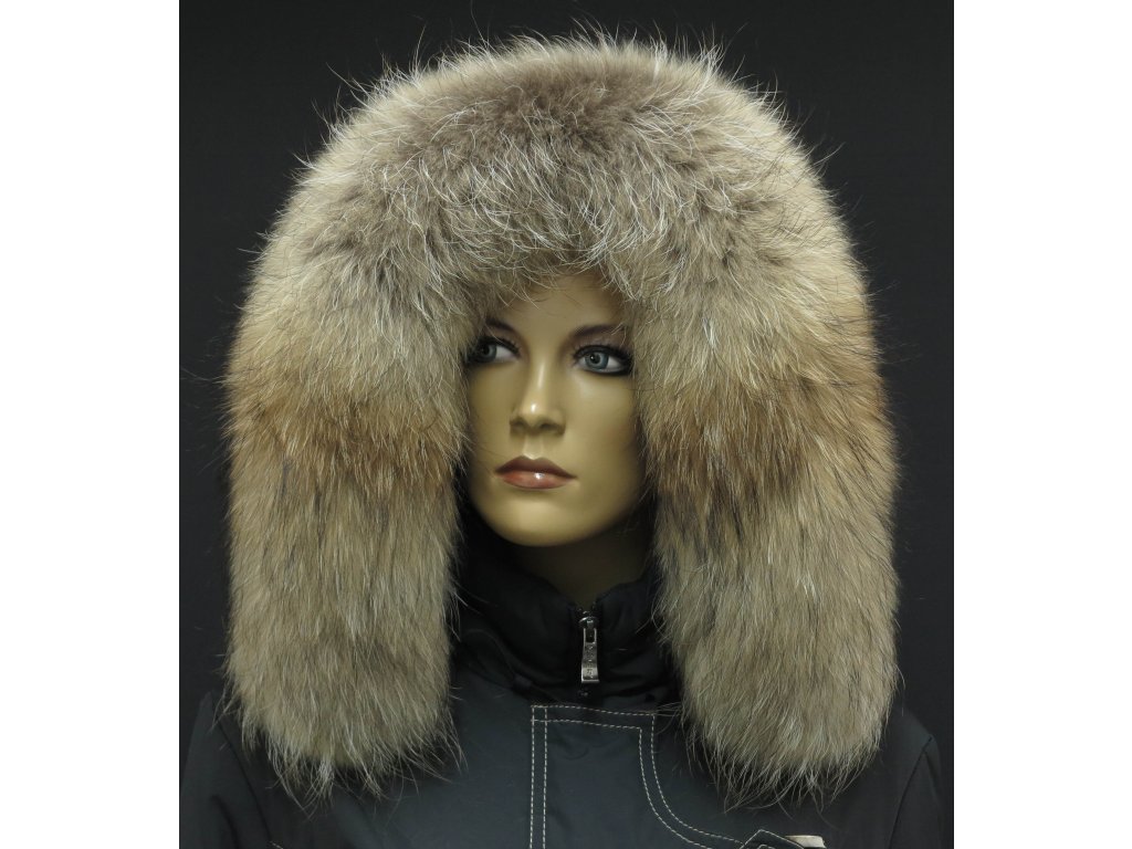 Kožešina na kapuci z finského mývalovce - 7067 NATUR