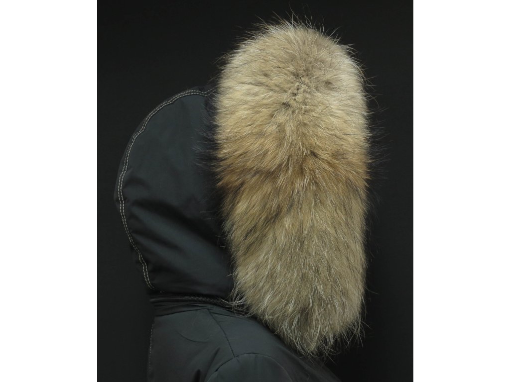 Na výrobu kožešinových lemů používáme pravou kožešinu z finského mývalovce Saga Royal – to znamená certifikovanou a vždy tu nejlepší kvalitu kožešiny, která se vyznačuje maximální hustotou (bohatostí) a dlouhým vlasem.