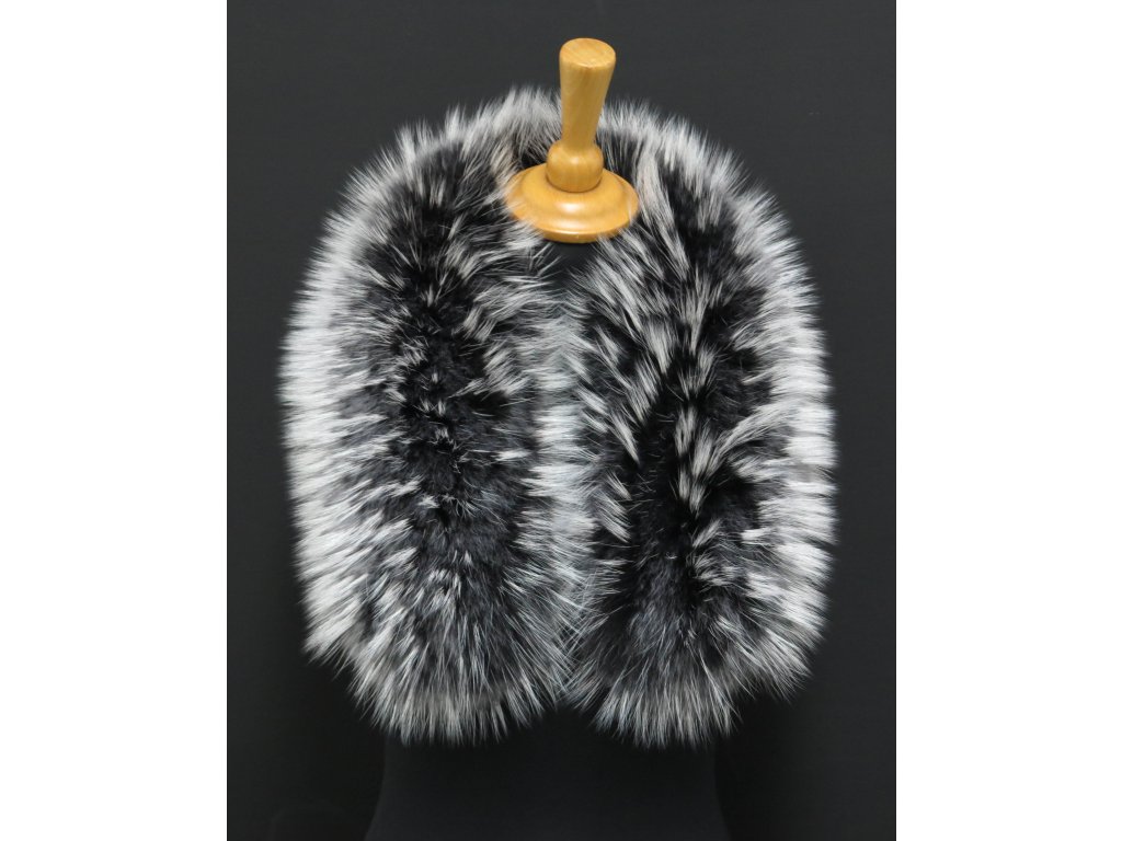 Kožešinový lem límec na kapuci z finského mývalovce 1029 BLACK & WHITE
