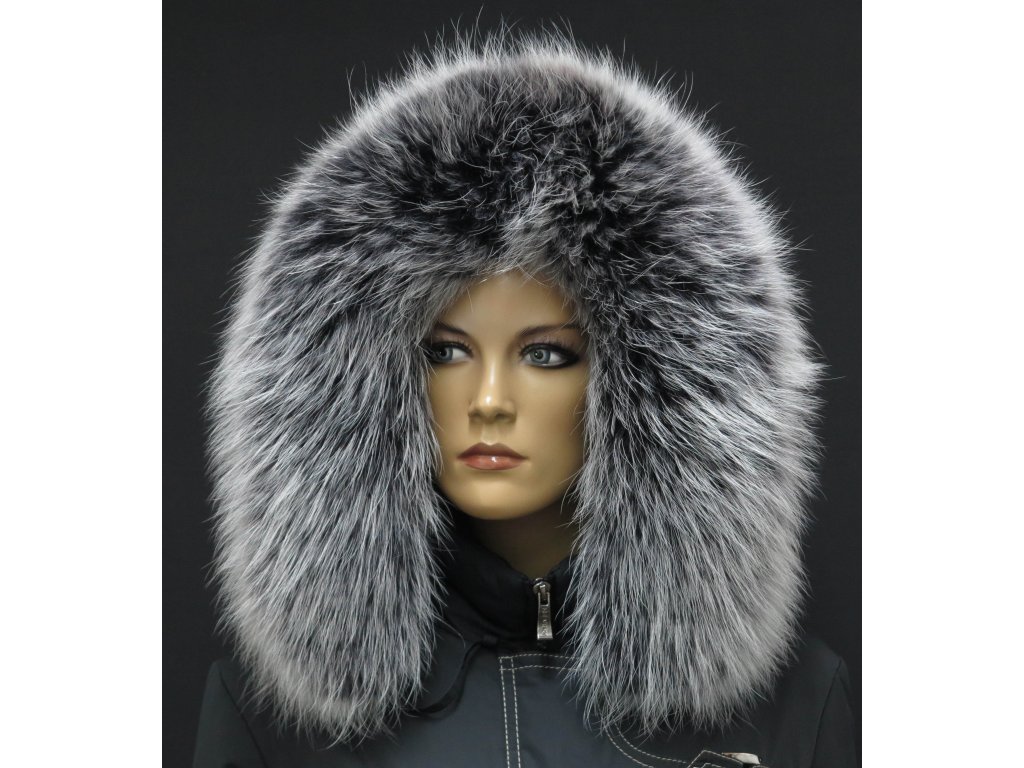 Kožešinový lem límec na kapuci z finského mývalovce 1032 BLACK & WHITE