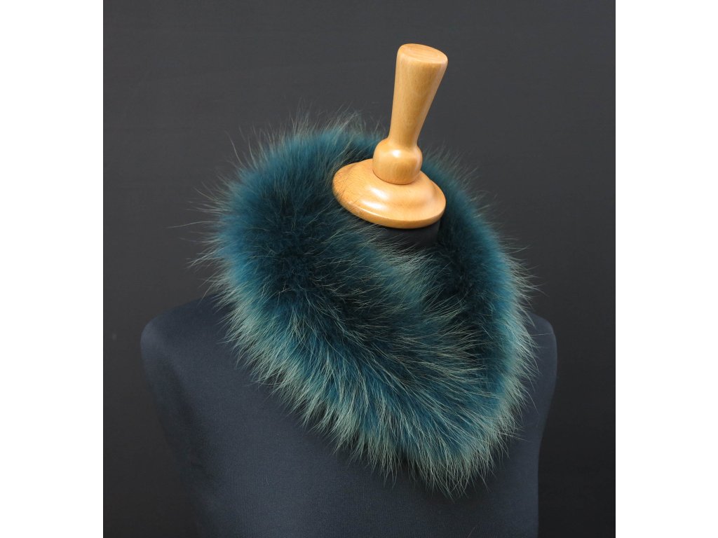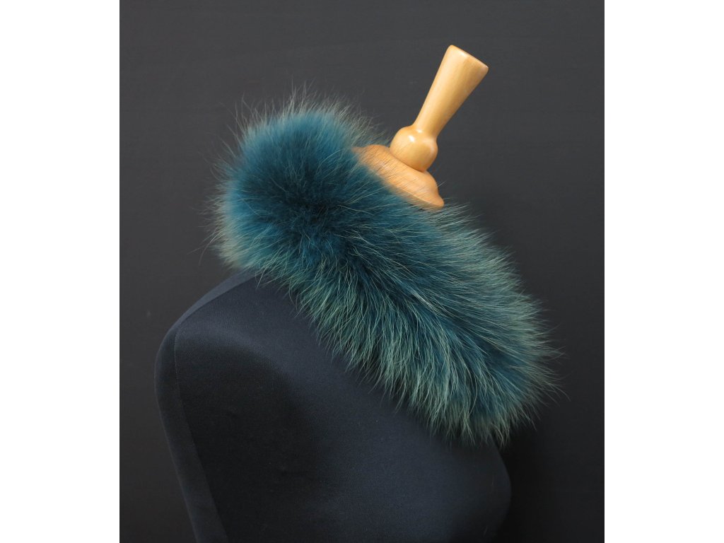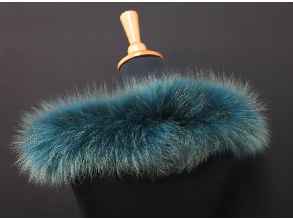 Kožešinový lem na kapuci z finského mývalovce - 2060 PETROL BLUE 50 cm krátký 2. JAKOST