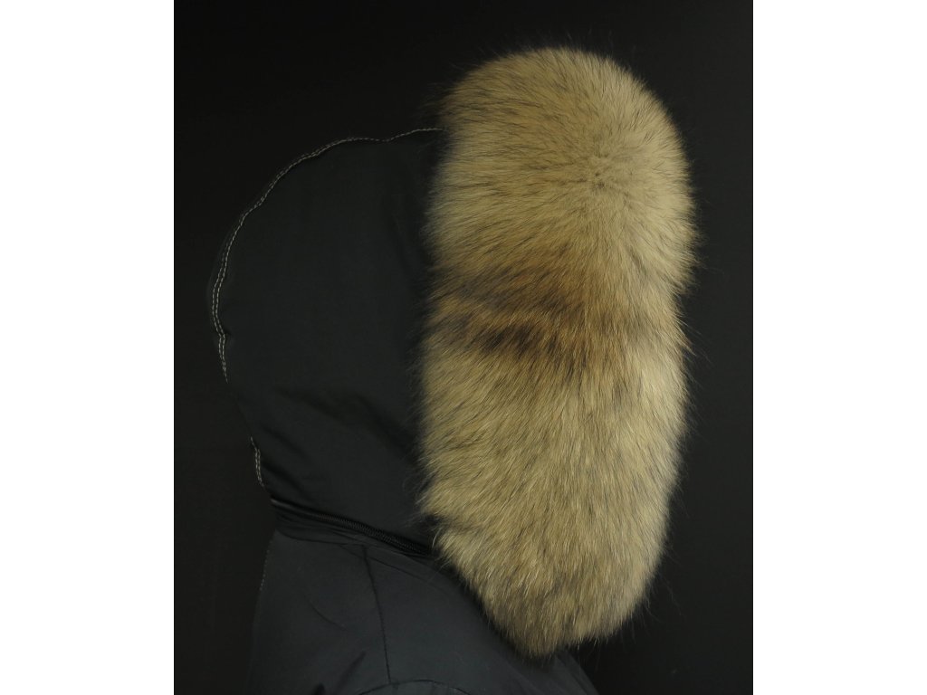 Na výrobu kožešinových lemů používáme pravou kožešinu z finského mývalovce Saga Royal – to znamená certifikovanou a vždy tu nejlepší kvalitu kožešiny, která se vyznačuje maximální hustotou (bohatostí) a dlouhým vlasem.