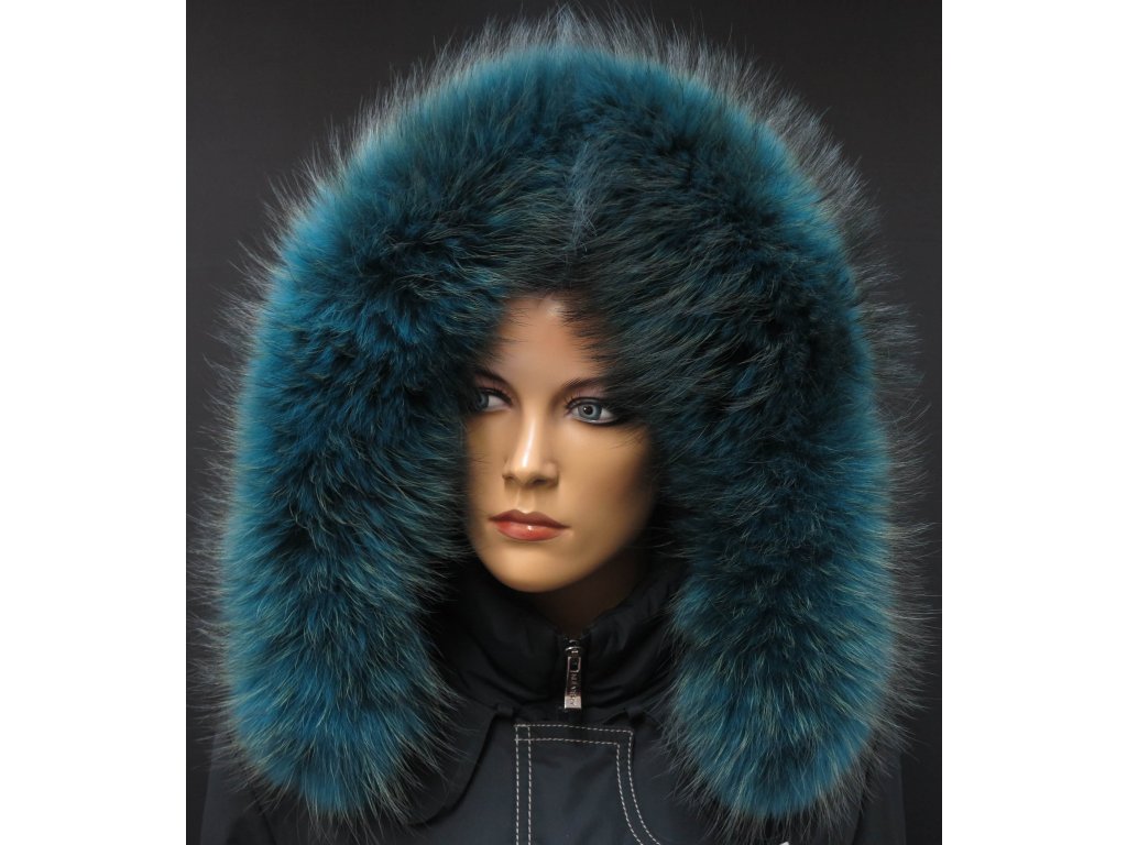 Kožešinový lem na kapuci z finského mývalovce - 2053 PETROL BLUE