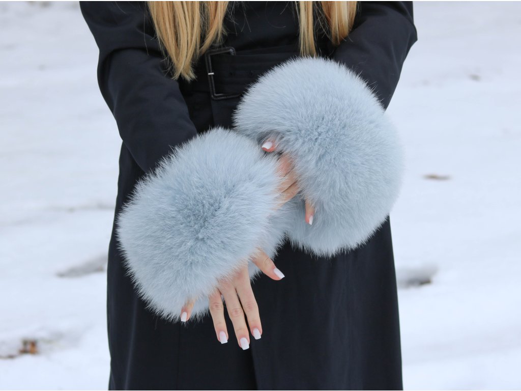 Kožešinové manžety z polární lišky 04 světle šedomodré
