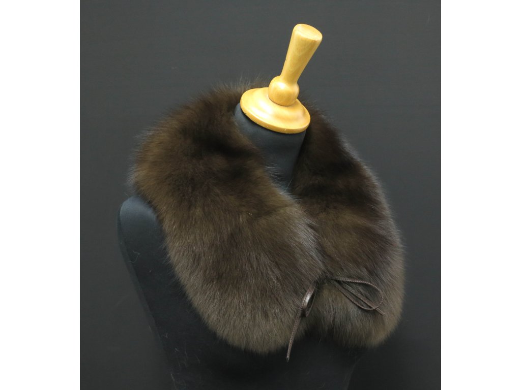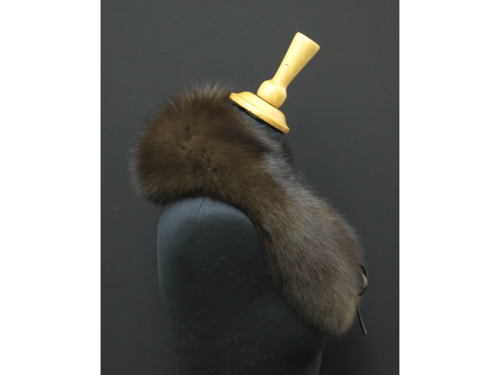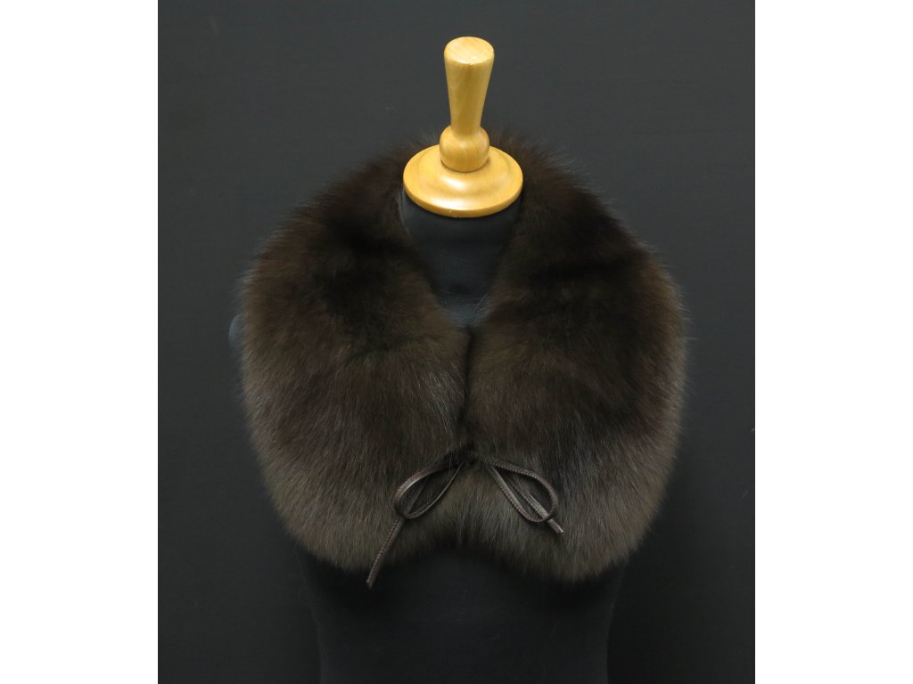 Kožešinový límec z lišky kulatý + kožené šňůrky L295 tmavě hnědý