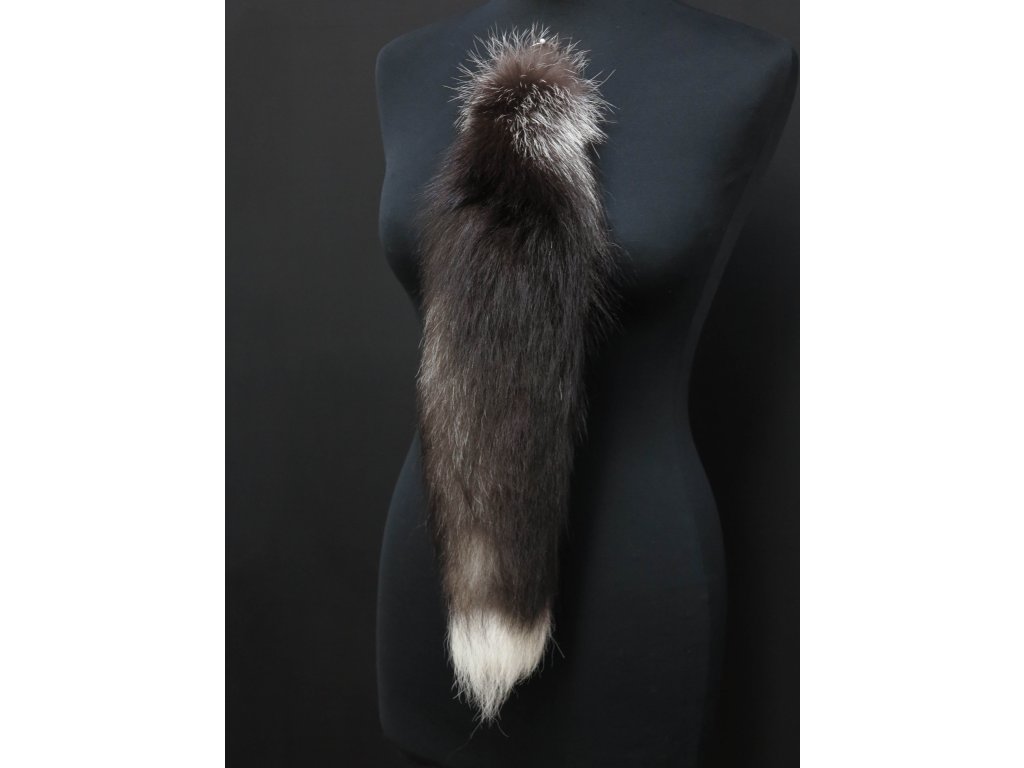 Kožešinový ohon ze stříbrné lišky je ideálním doplňkem pro ozdobení vaší kabelky. Délka ocasu je 42 cm.