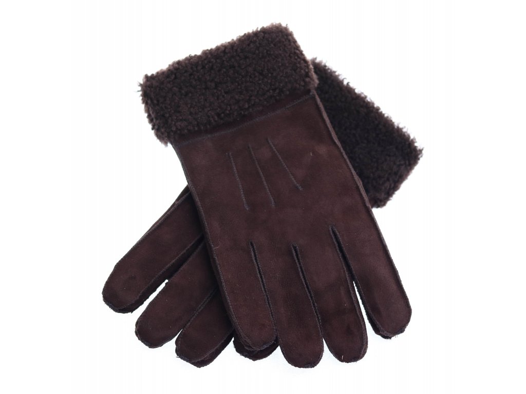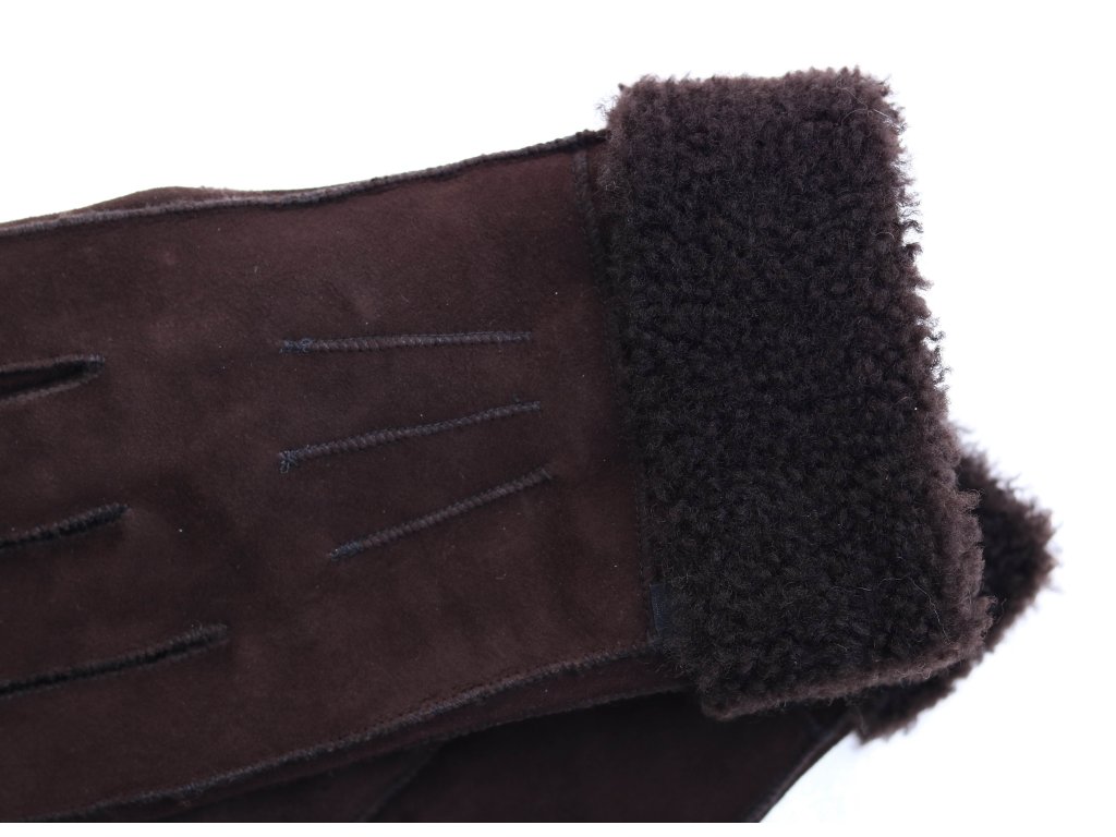 Kožešinové rukavice prstové PR157 tmavě hnědé - velur vel. M/L