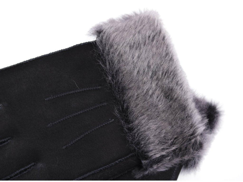 Kožešinové rukavice prstové PR69 černé velur vel. M/L melírovaný vlas kožešiny