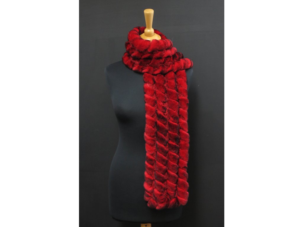 Kožešinová šála z králíka S45 červená s melírem - délka 145 cm