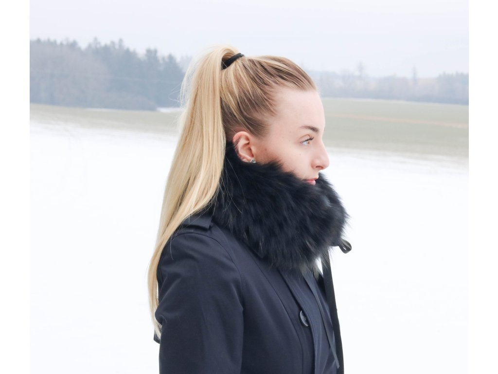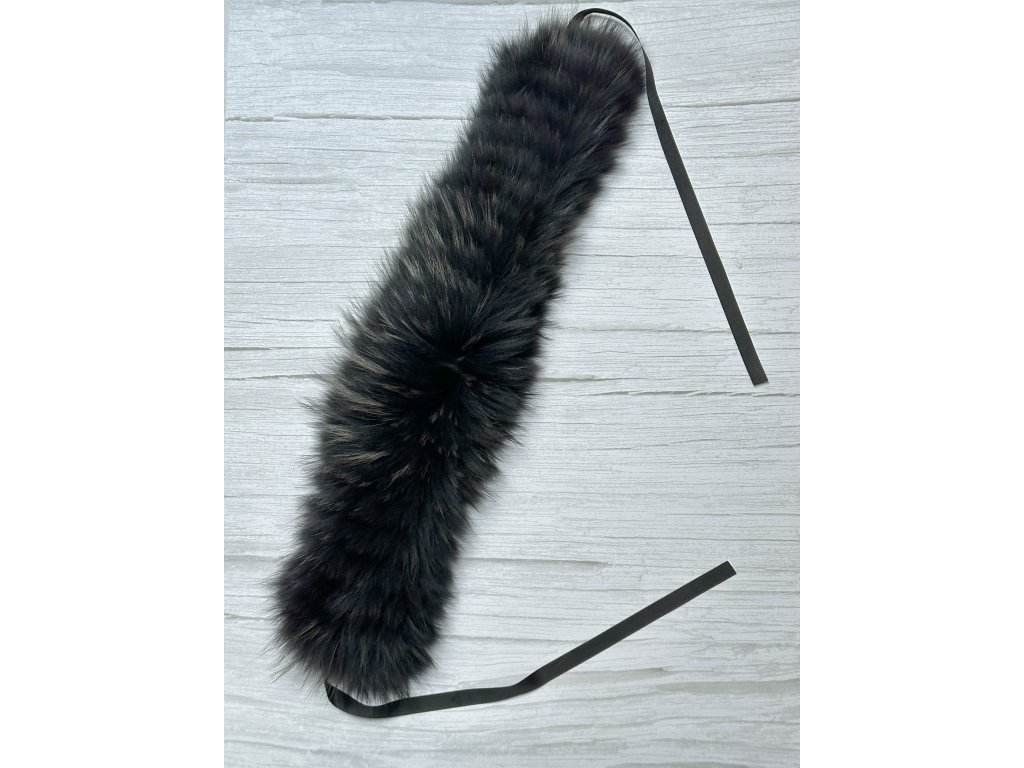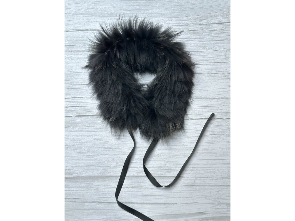Kožešinový límec z mývalovce BLACK RIB se stuhou