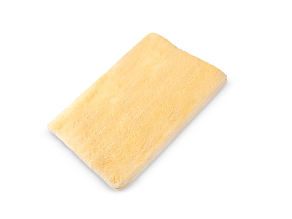 Podložka je vyrobena z menších kusů jehněčích kožešin, které jsou pečlivě sešité do souvislé plochy. Spodní strana je z odolného bavlněného plátna a na rozích jsou praktické elastické pásky pro snadné upevnění k matraci. Díky tomu podložka drží pevně na místě a zároveň zůstává lehká a vzdušná. Je to ekonomičtější varianta k podložce Classic.